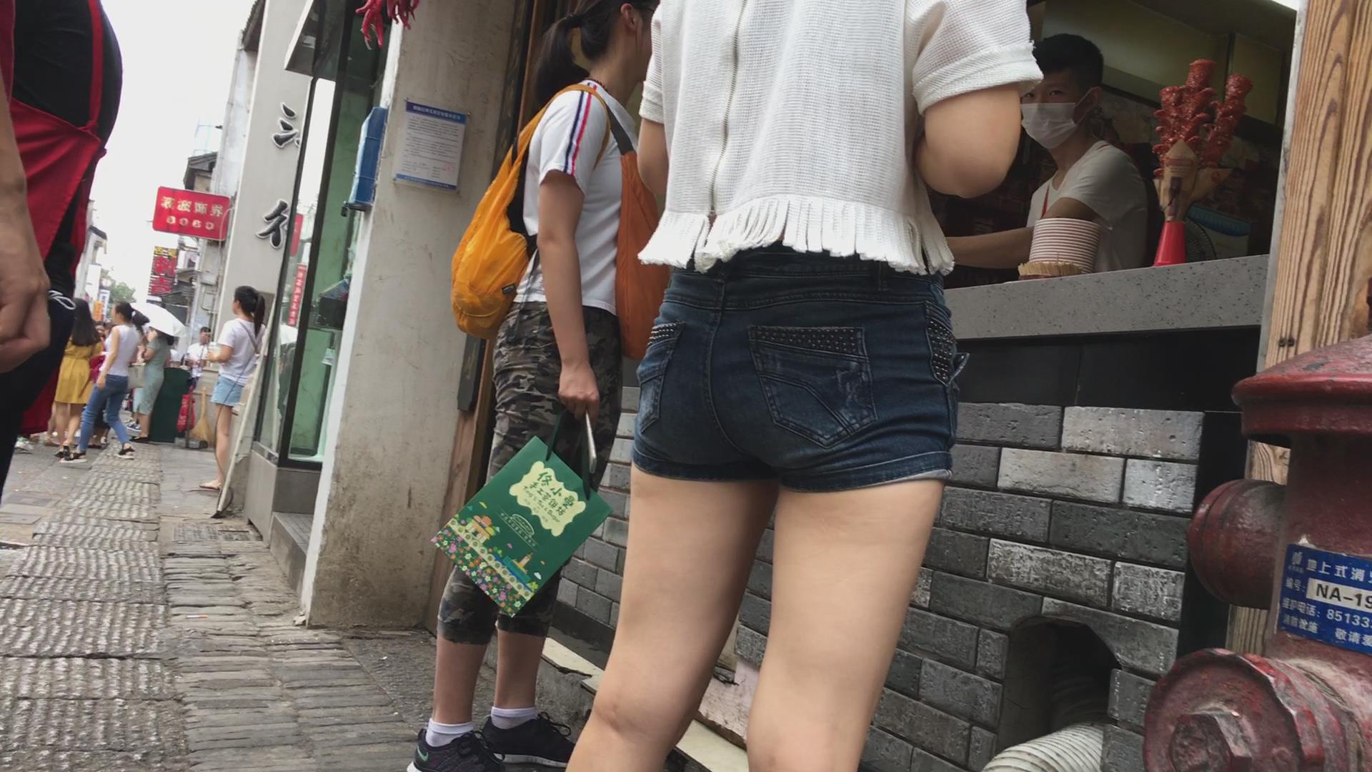 街拍牛仔短裤苹果臀美眉 编号4519 |