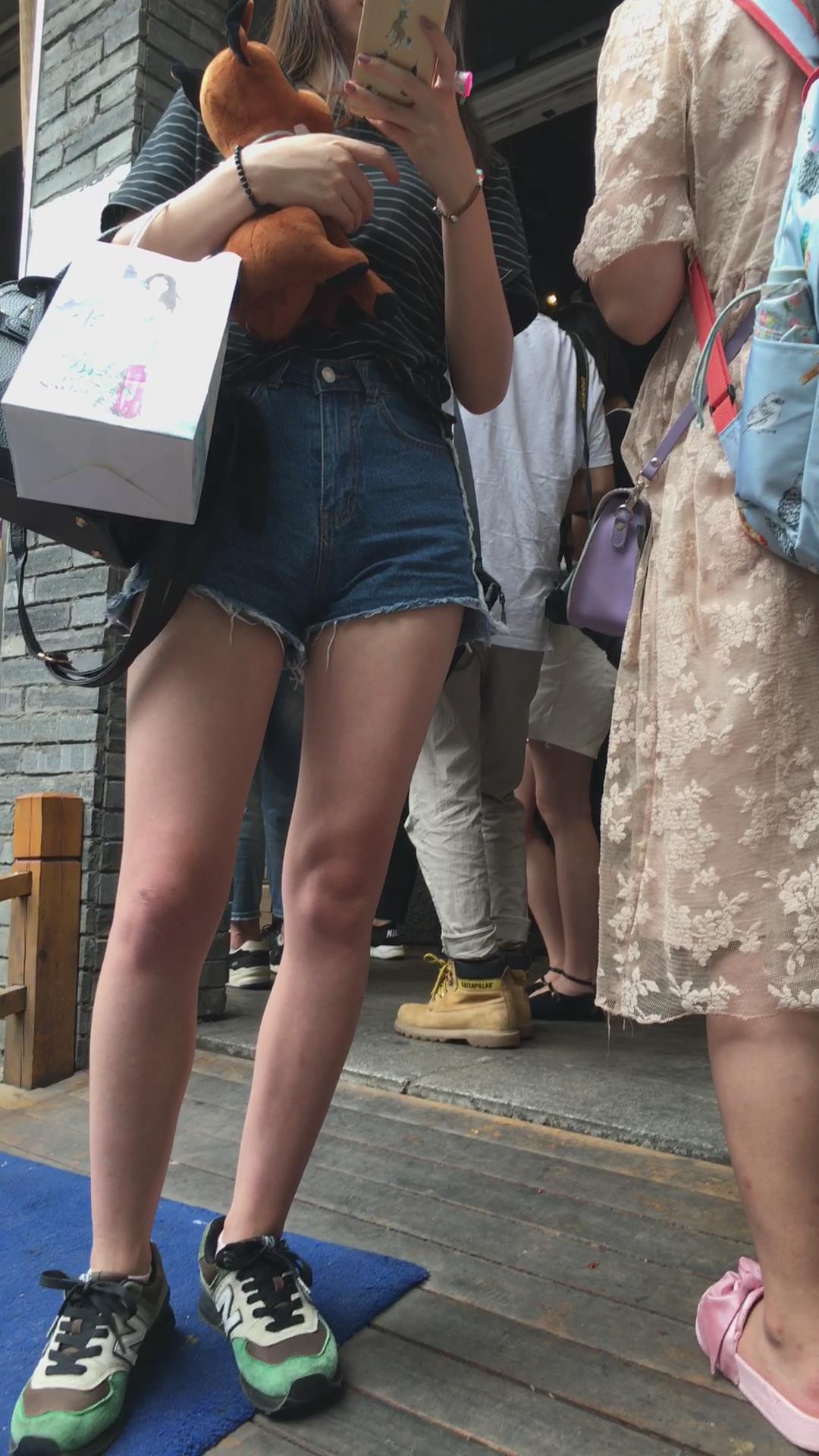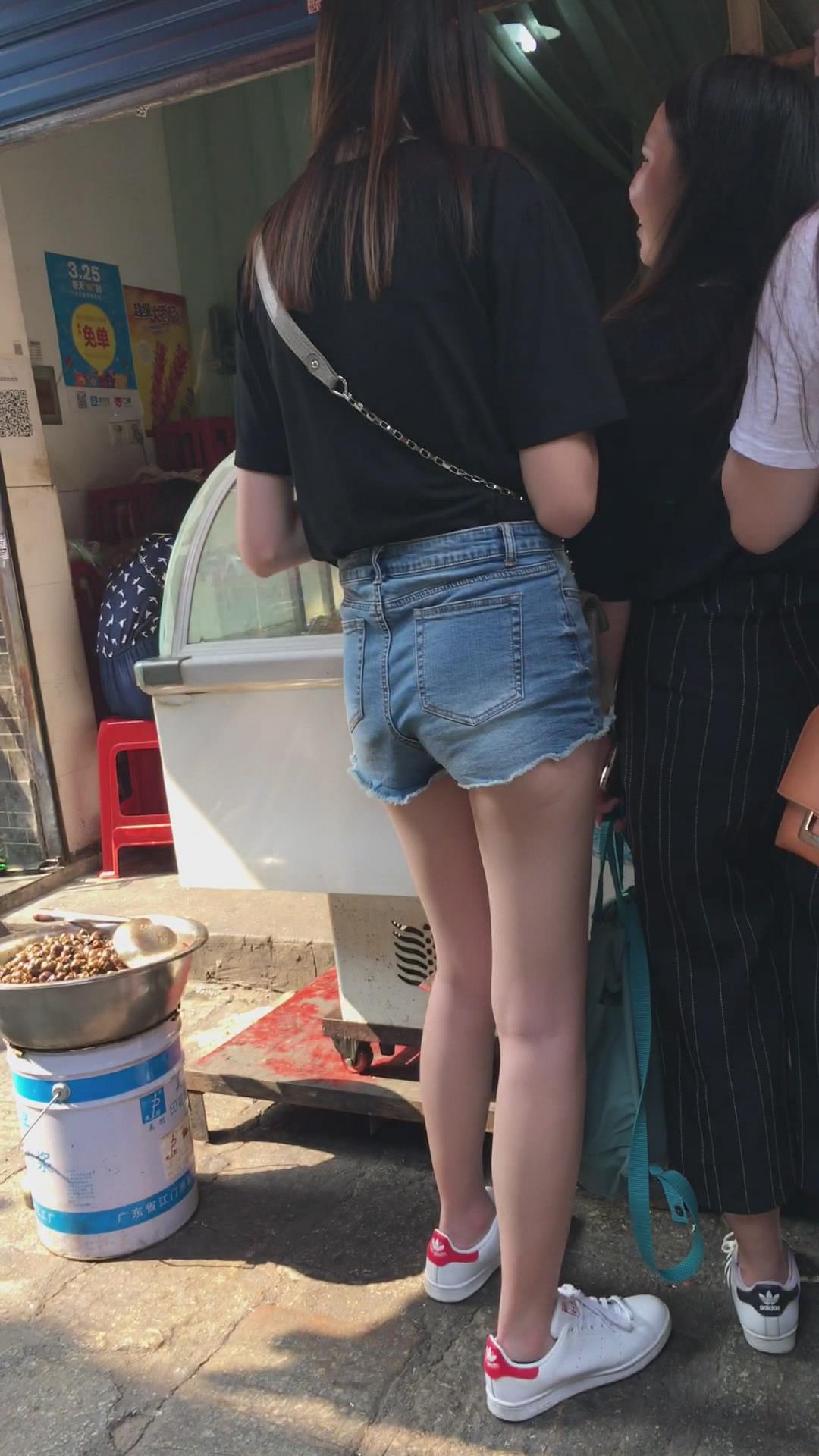 一箭双雕两位超短牛仔热裤美女,粉色内内已露出 编号4527 |