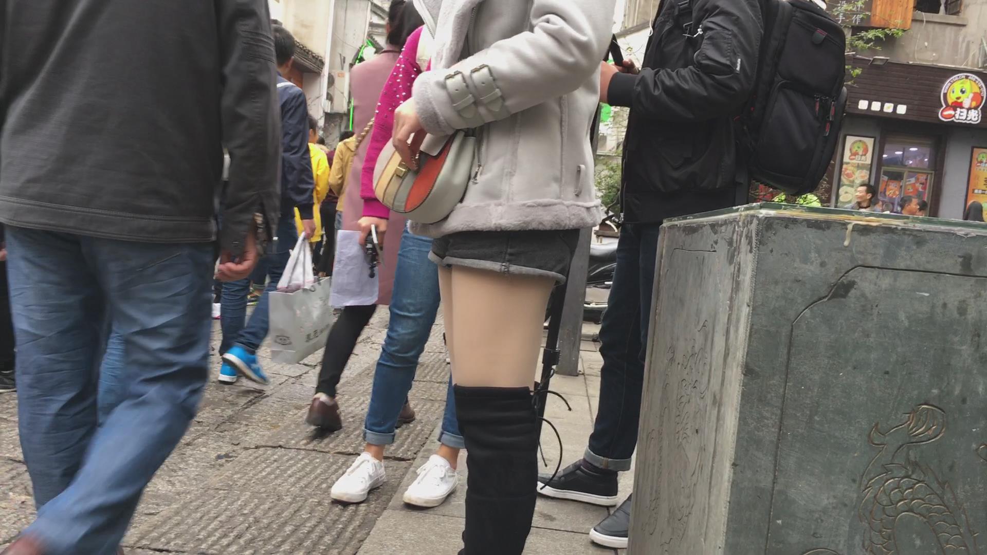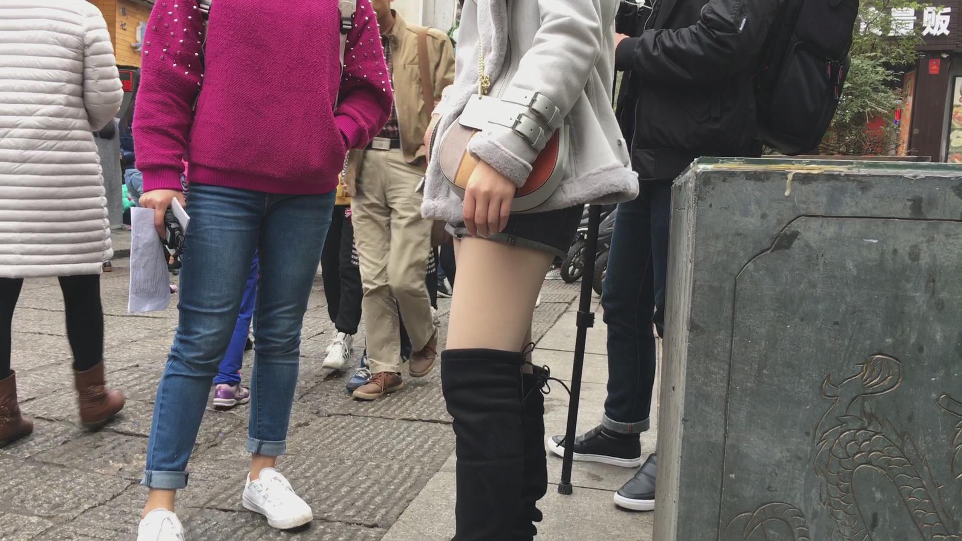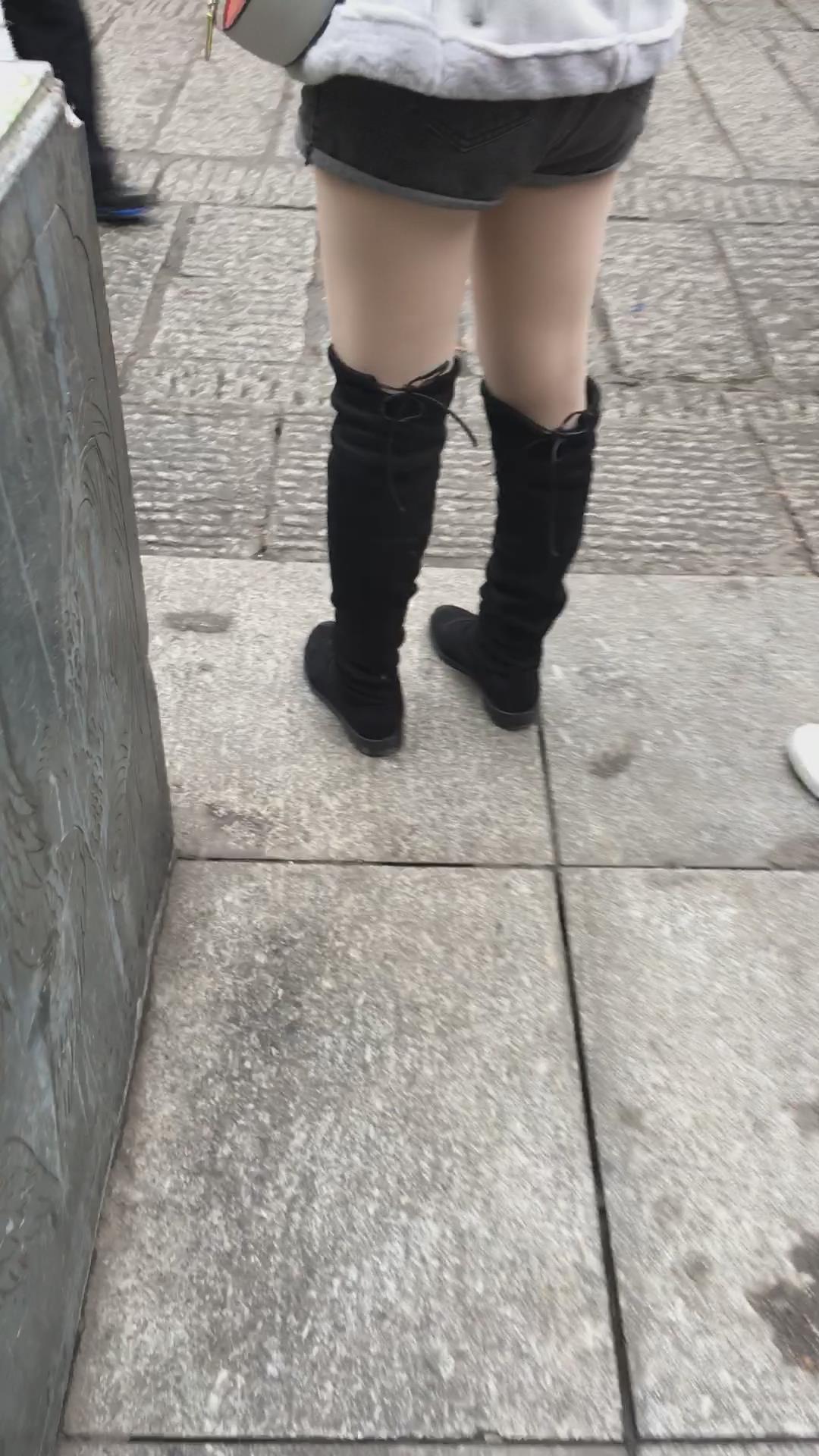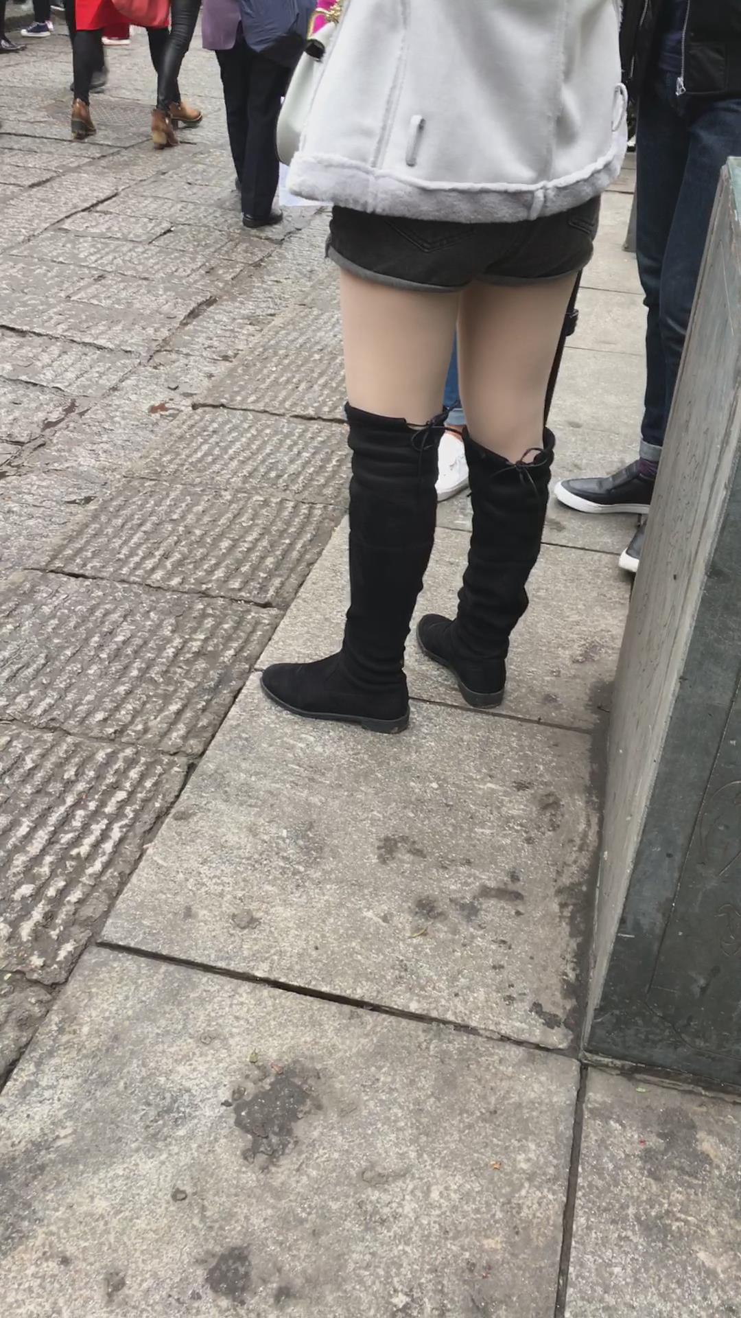 长筒靴热裤丝袜街拍美腿 编号4109 |
