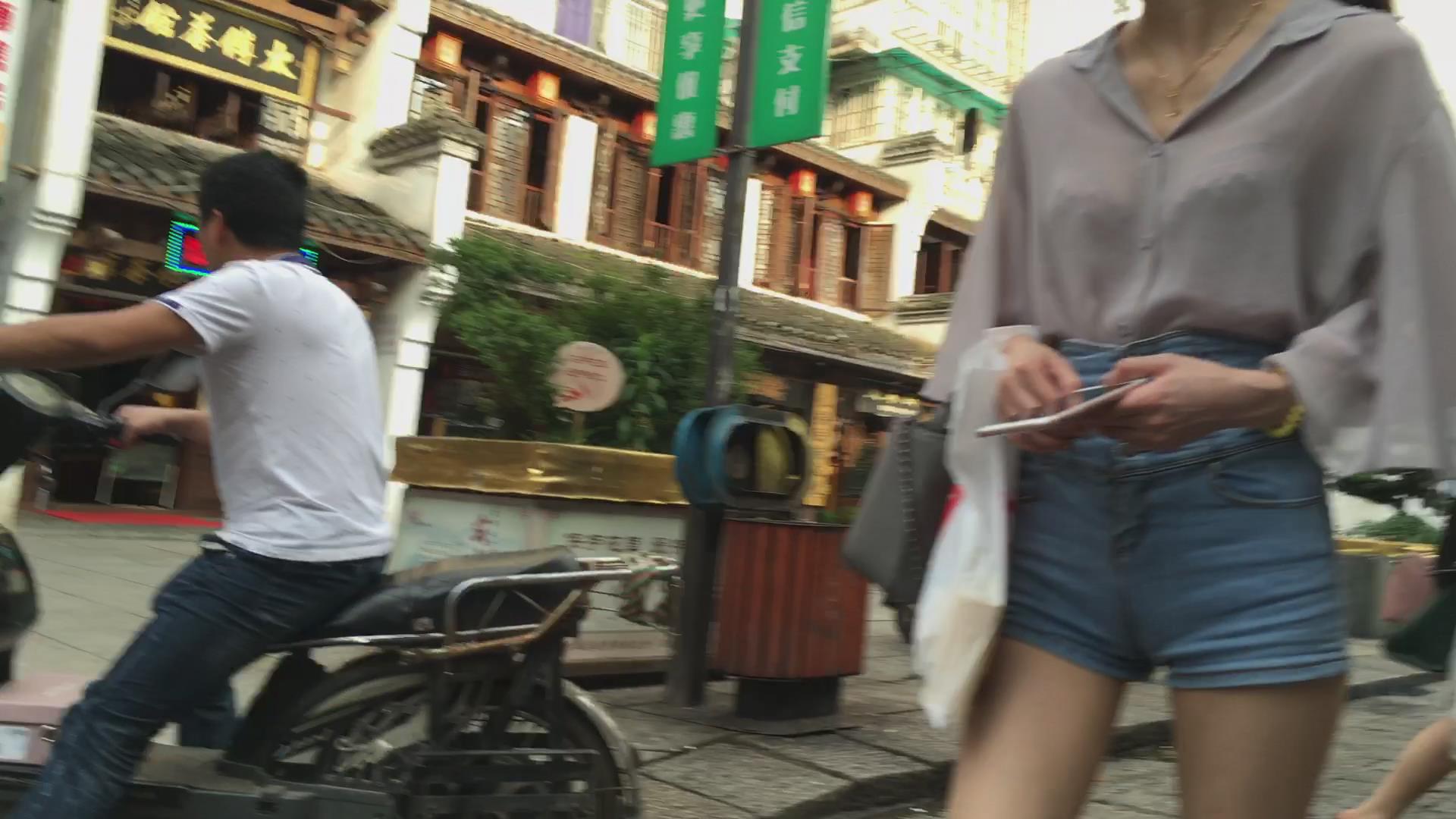 街拍高腰热裤修长美腿透明雪纺衫高挑美女 编号4225 |