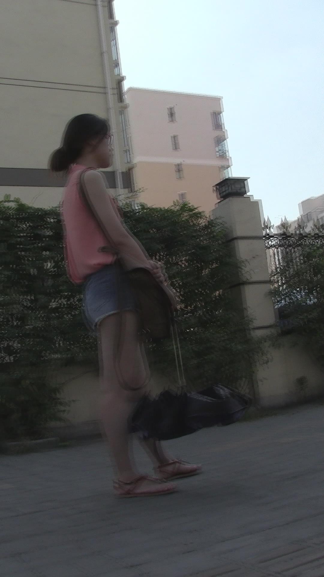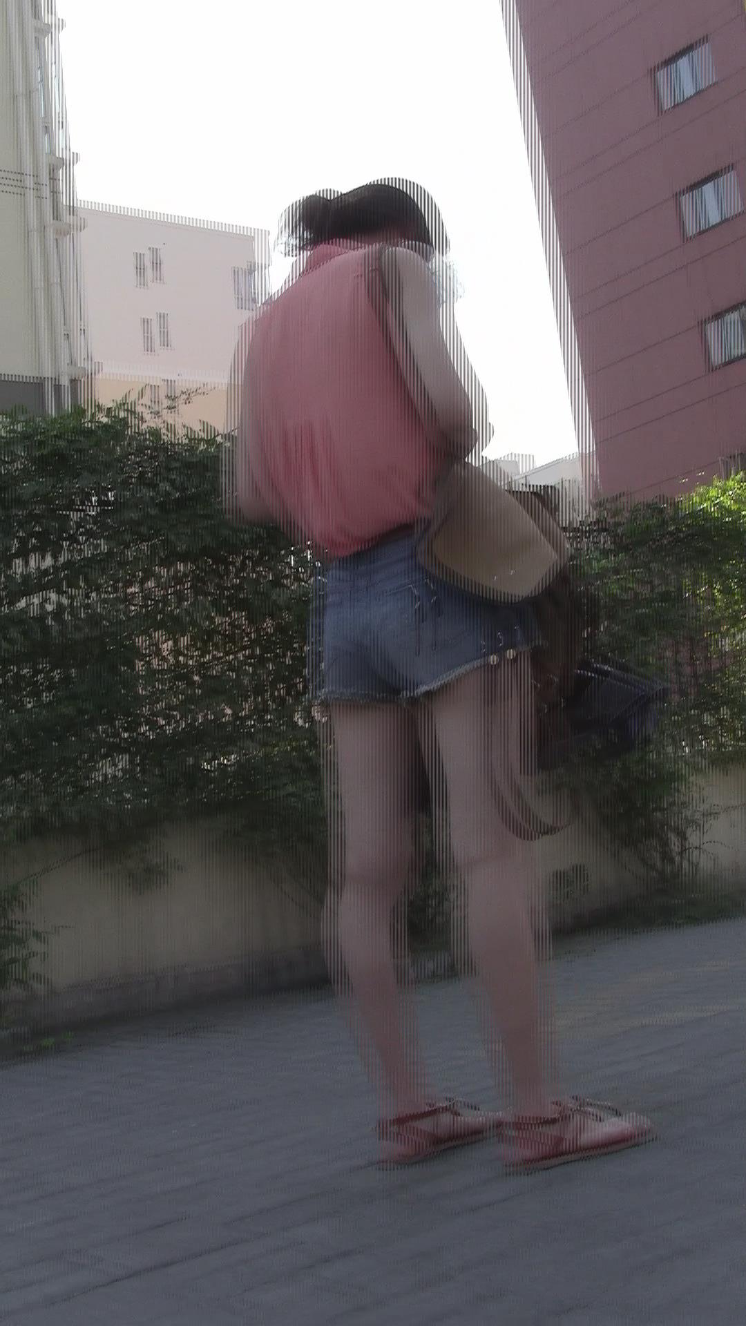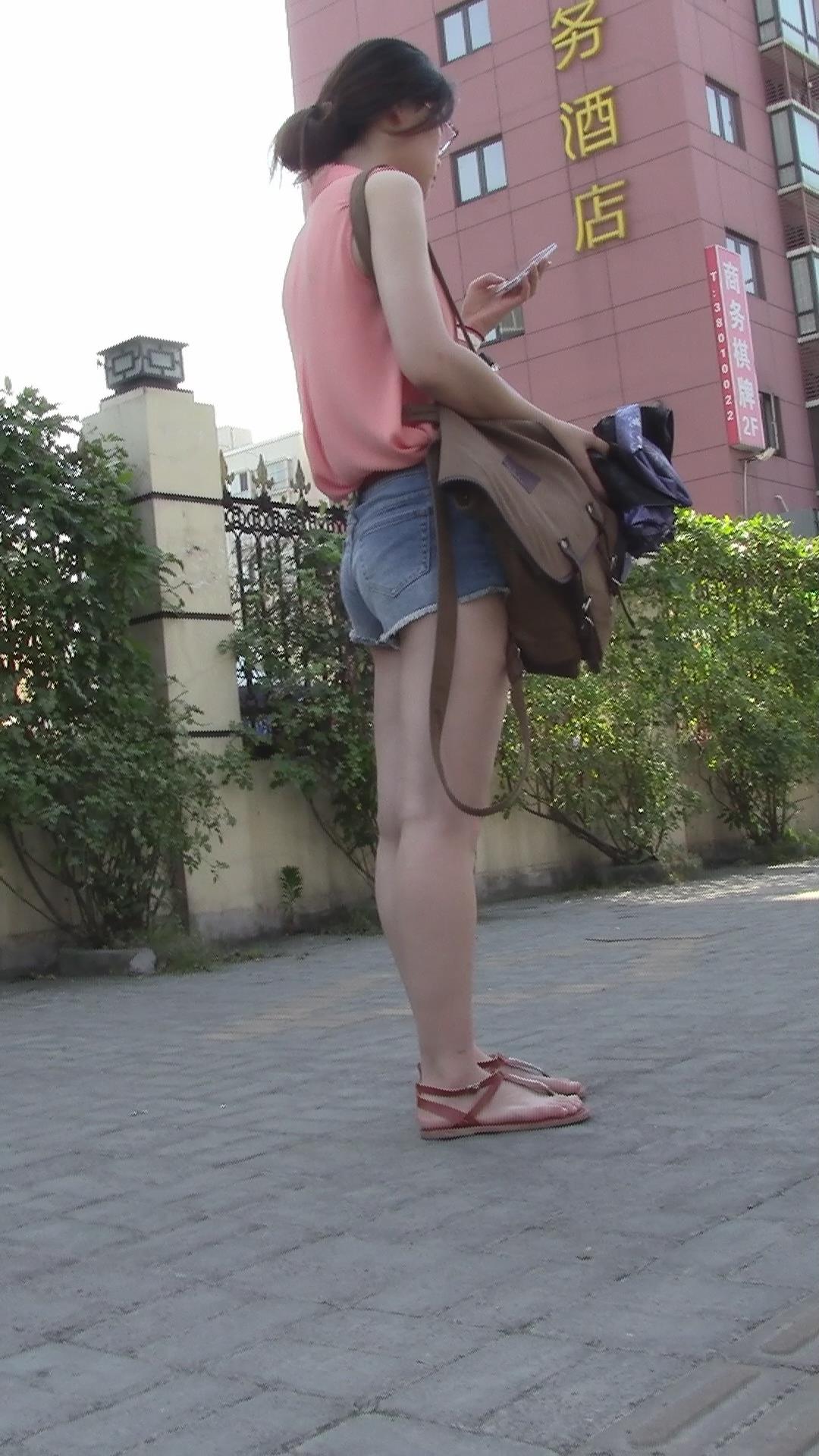 街边打电话的牛仔热裤粉衬衫小美女 编号4311 |