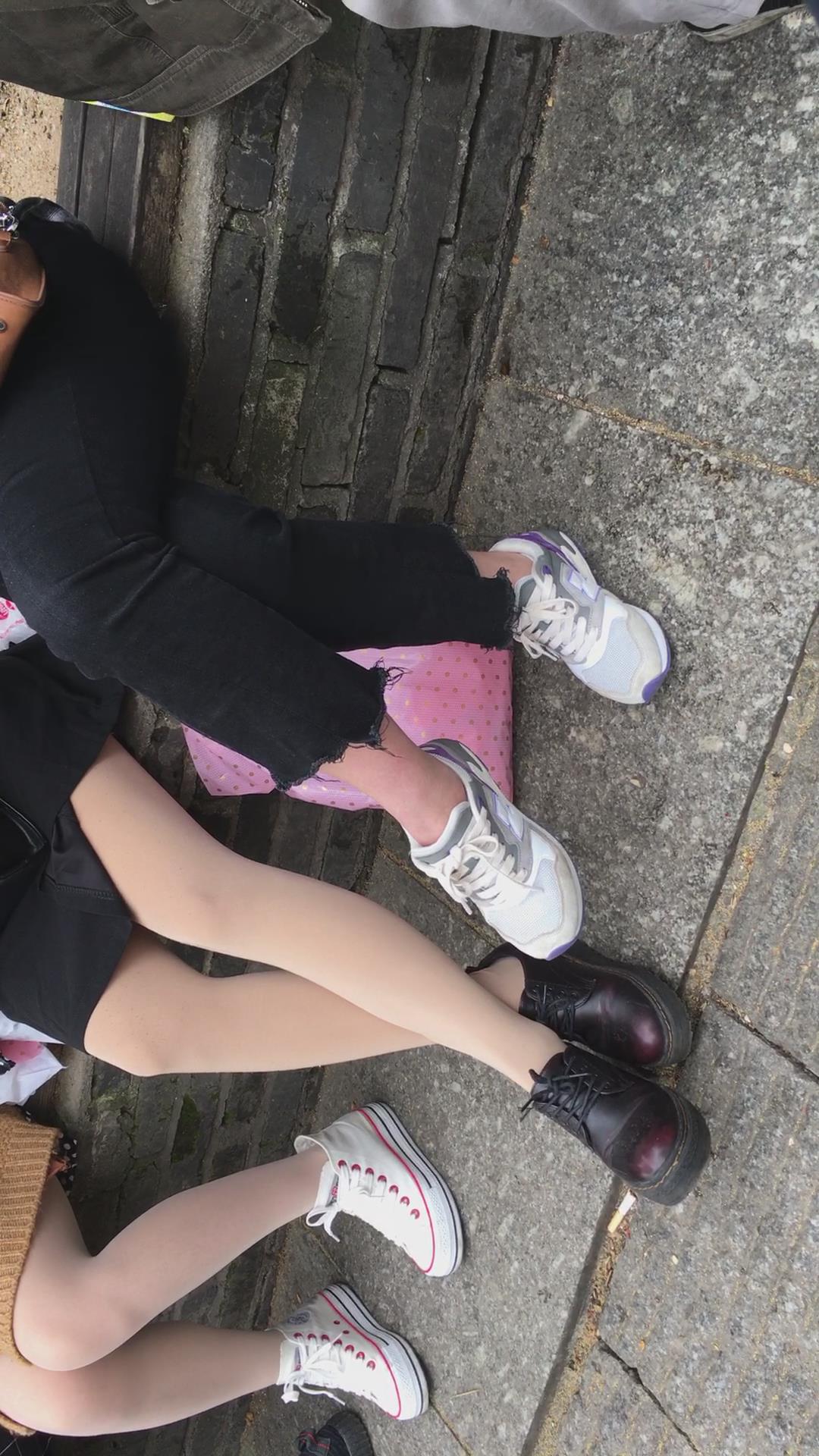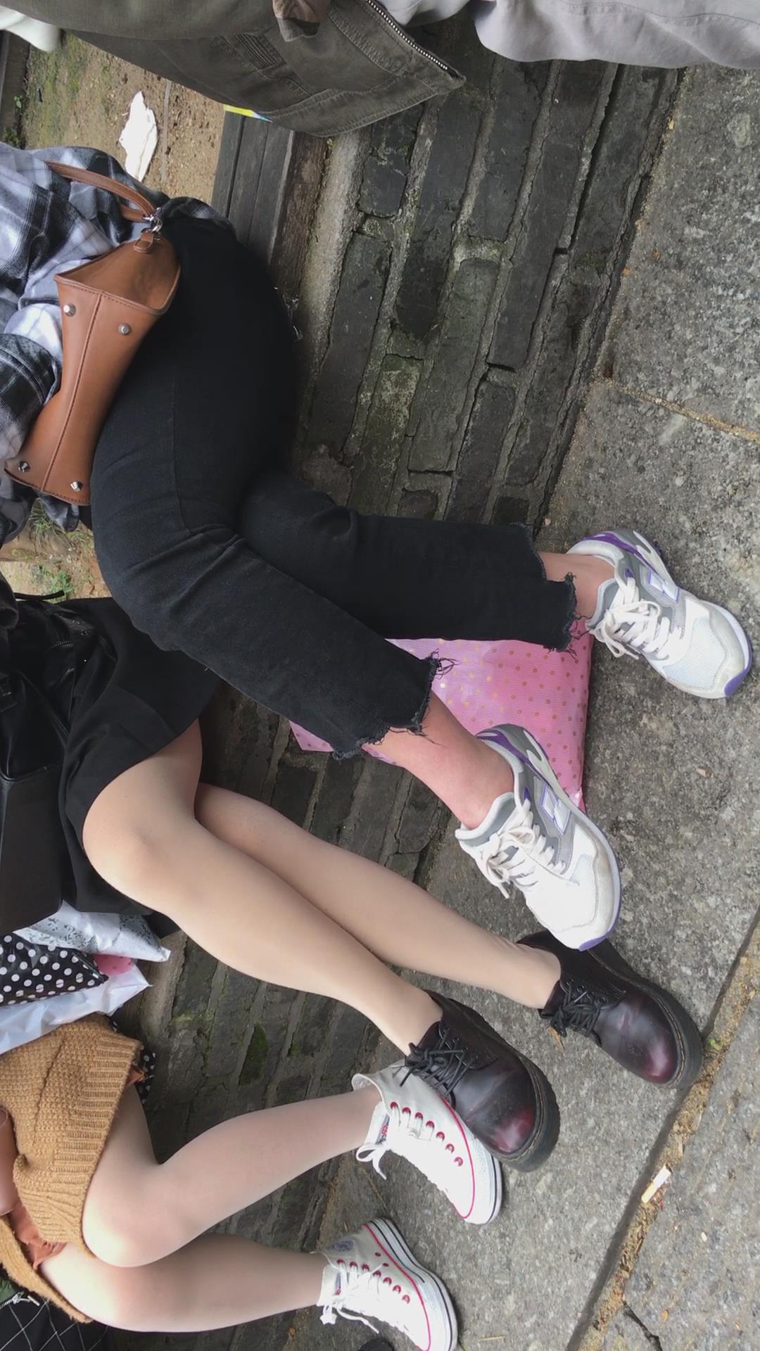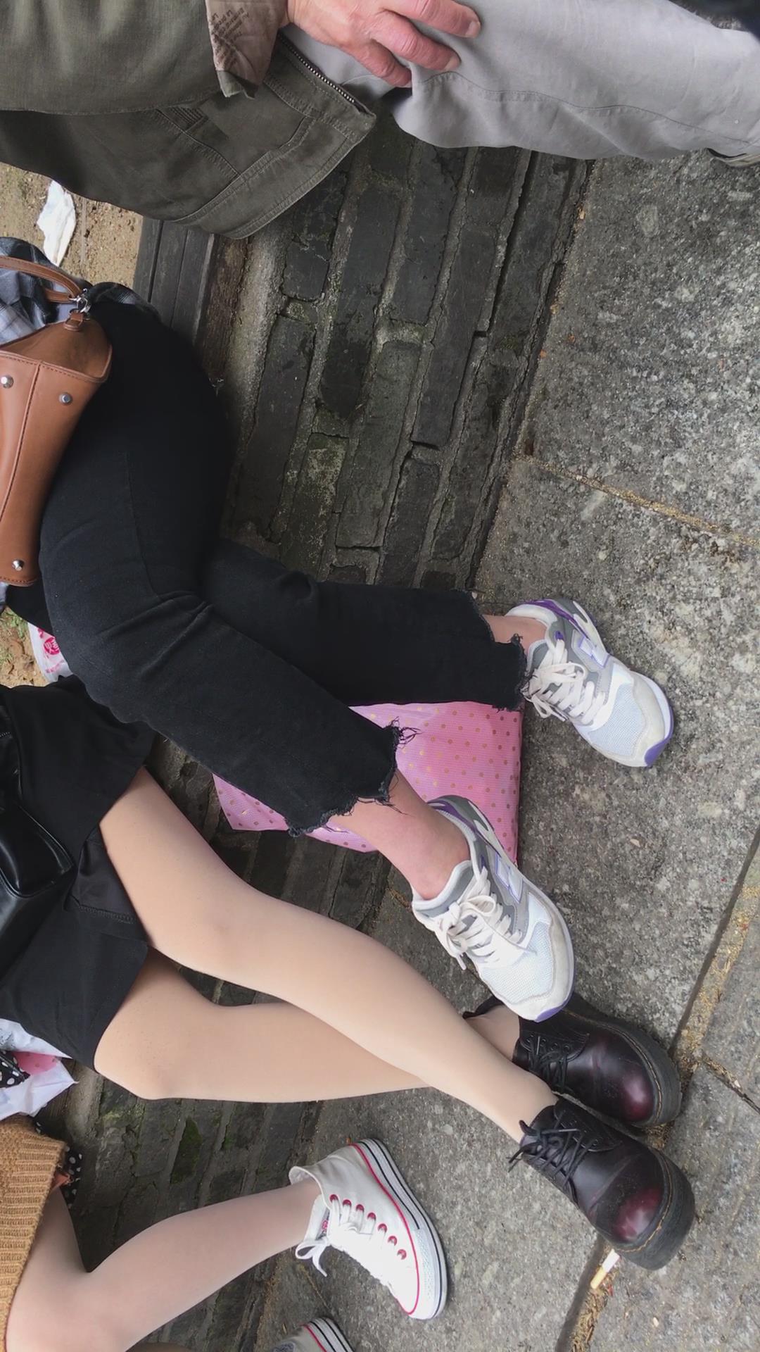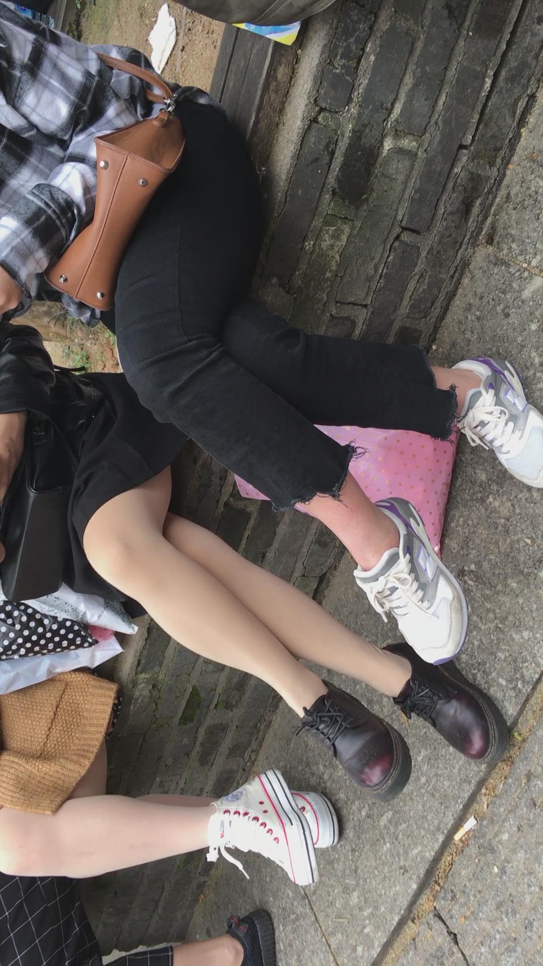 花坛边休息的街拍肉丝美腿 编号1650