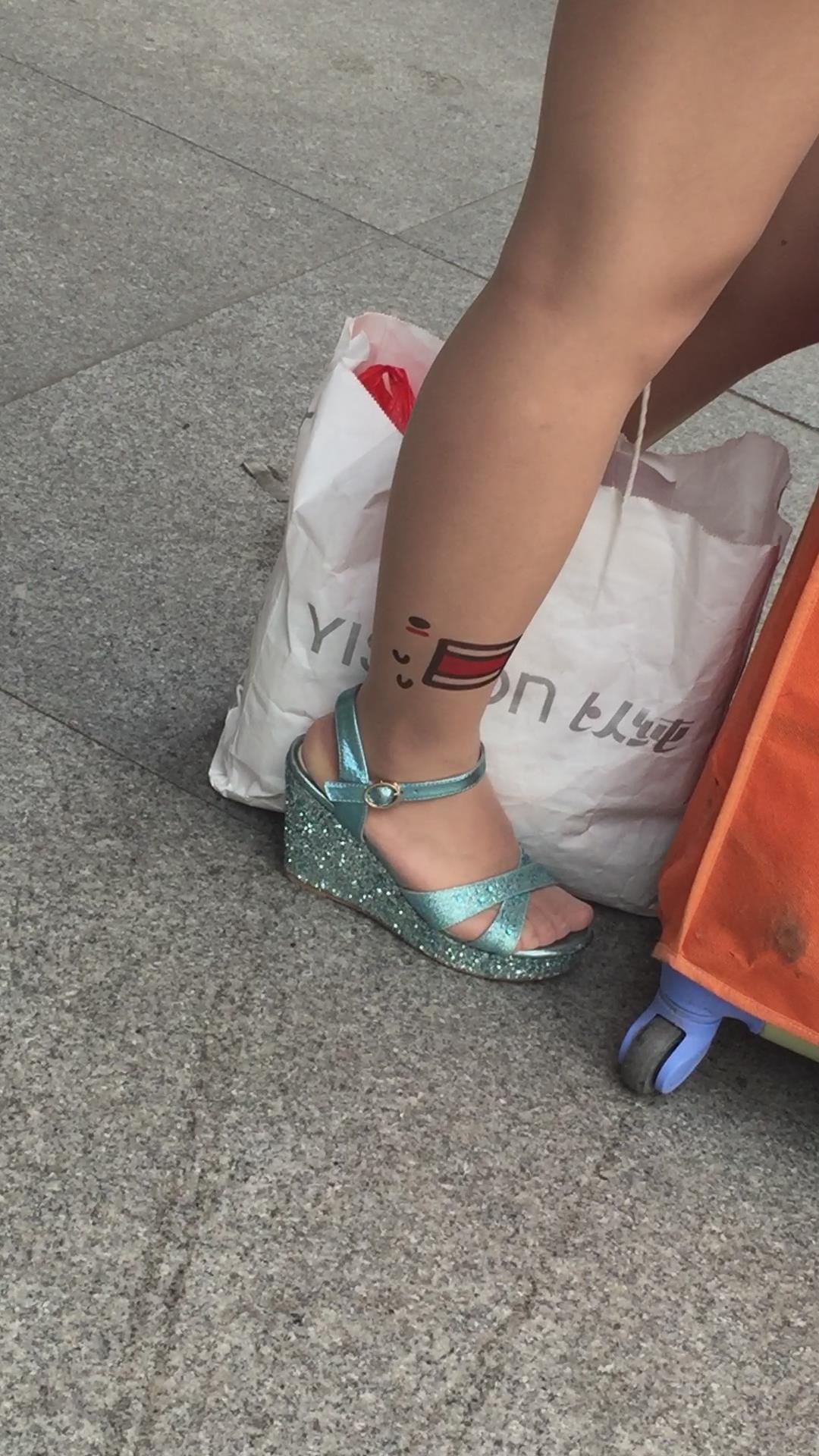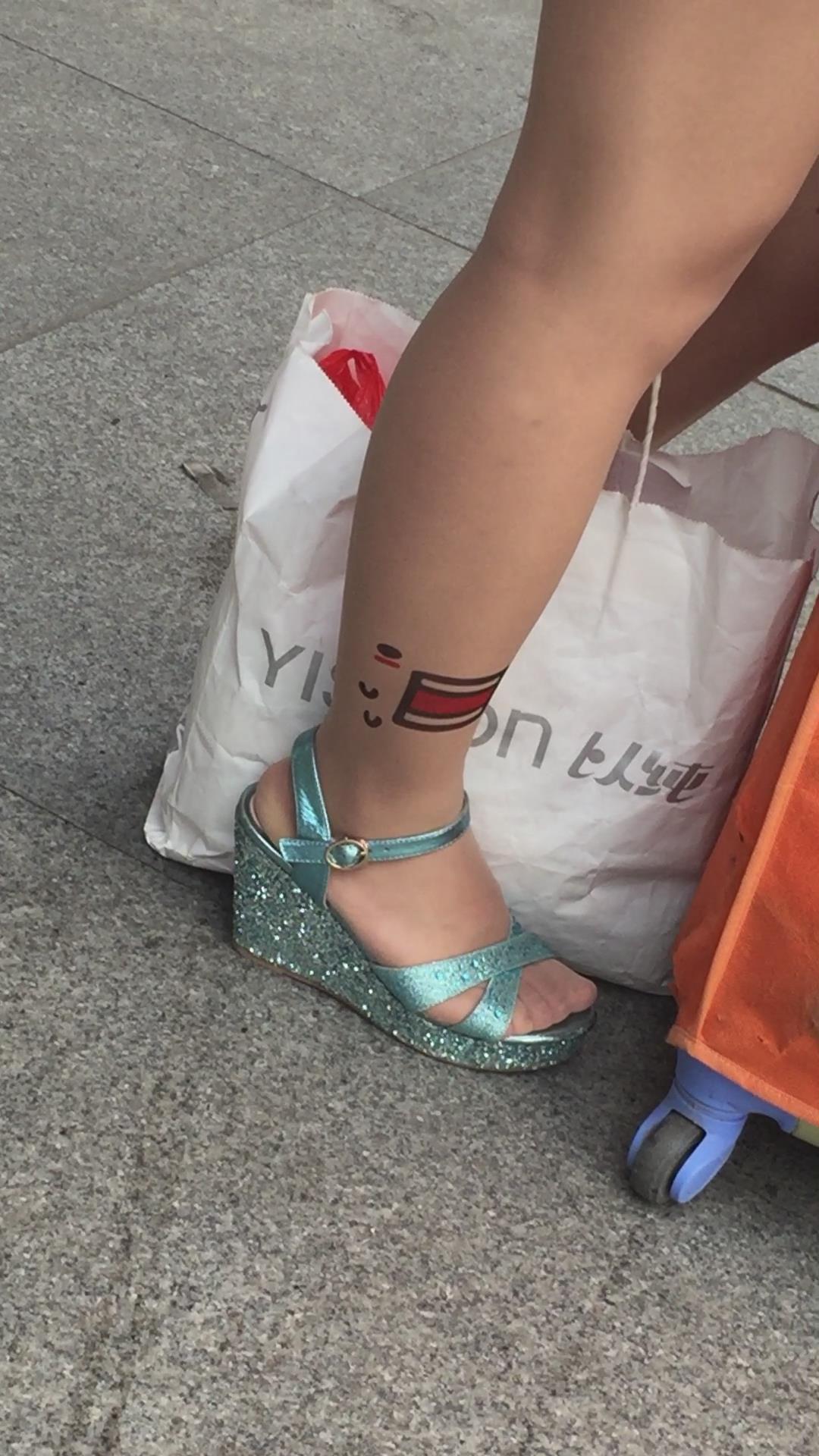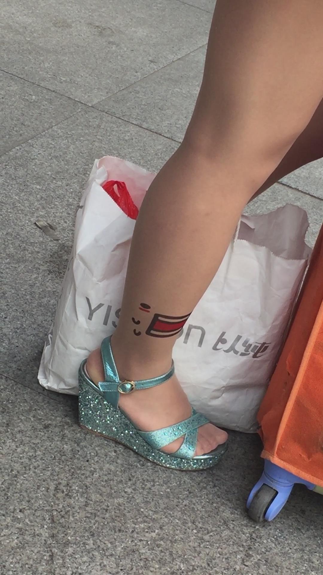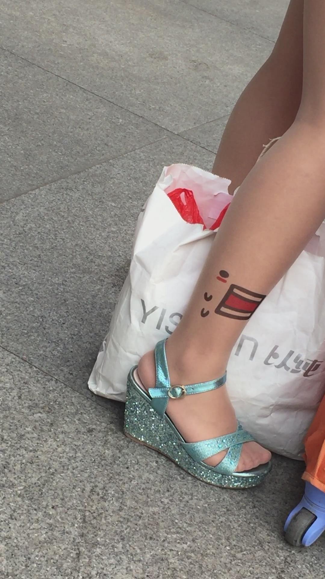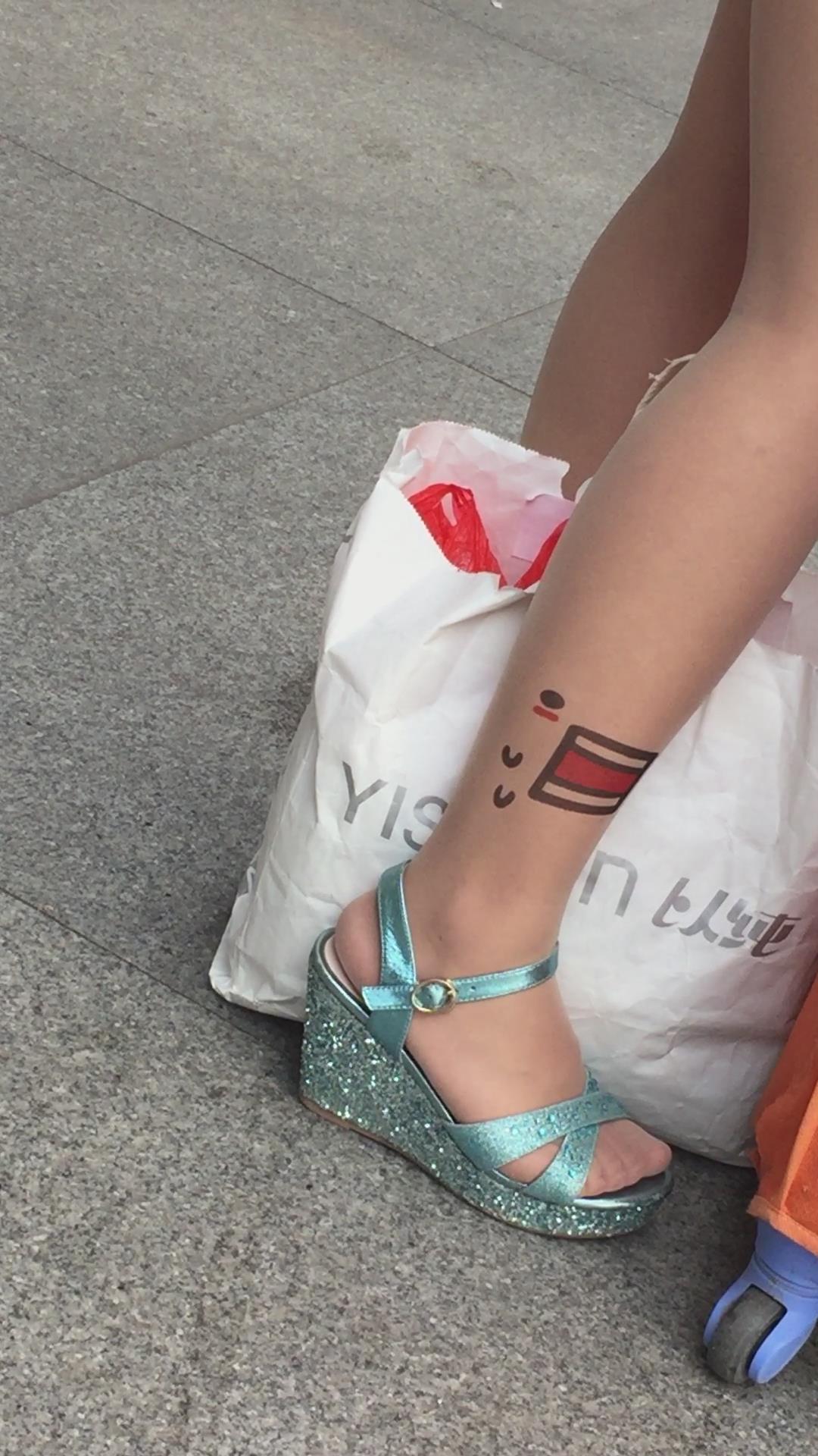 裸腿坡高跟凉鞋街拍美腿 编号1651