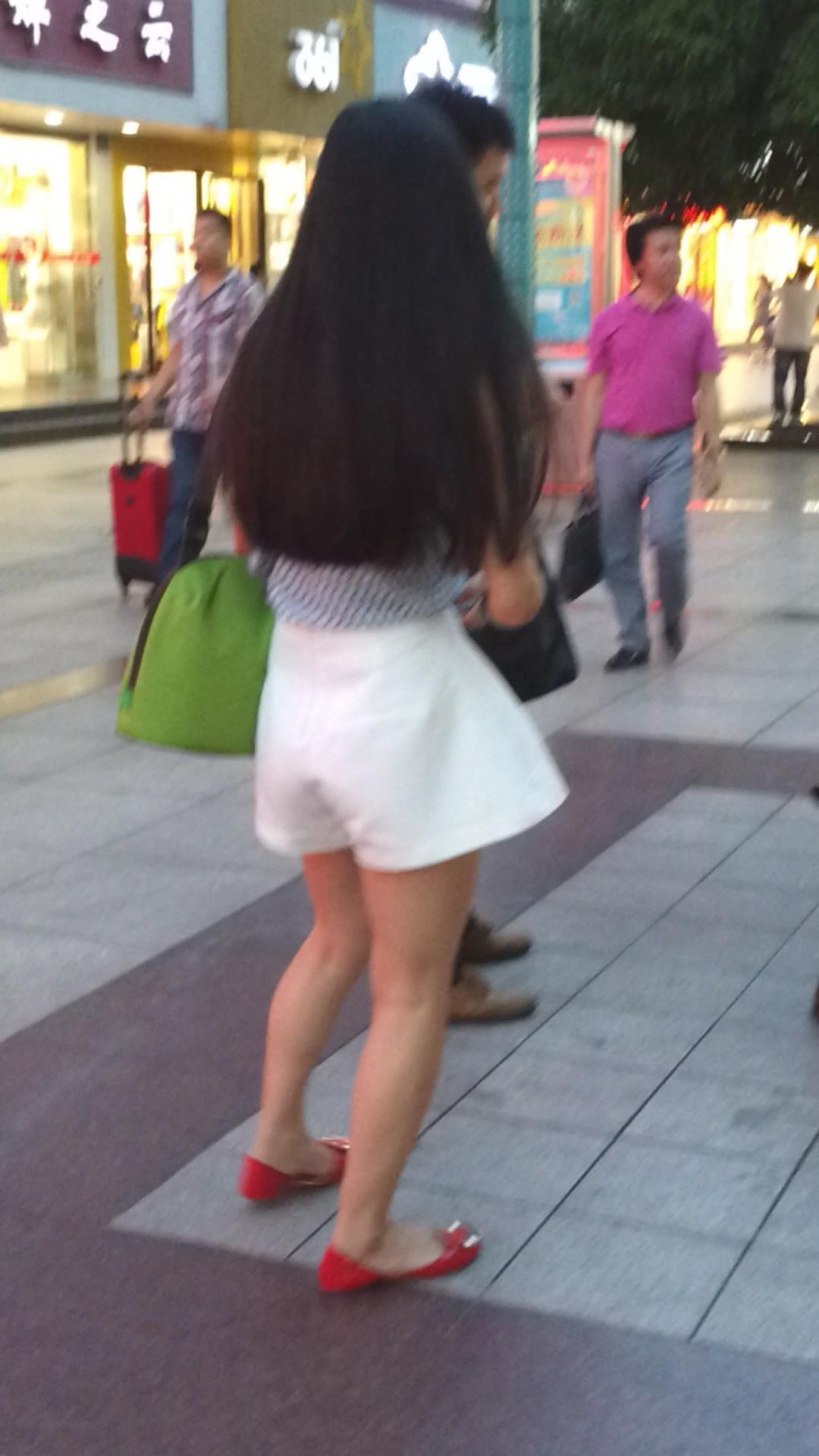 宽松热裤苗条身材小红色平底鞋长发美女 编号4584 |
