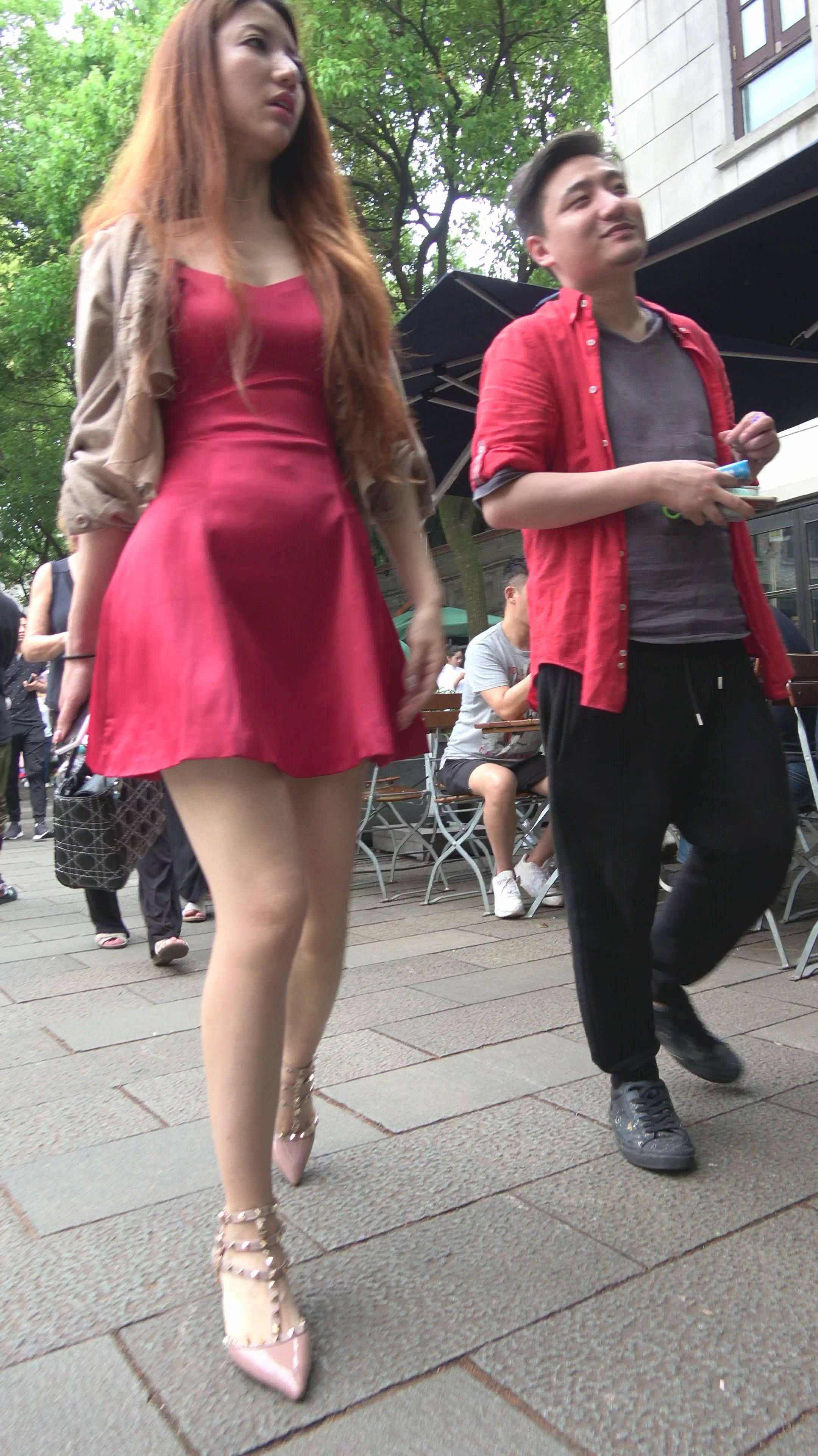 4K 性感长腿高跟街拍红色连衣裙美女 编号7963