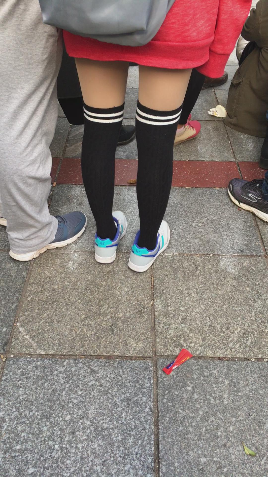 街拍长筒裤袜学生妹 编号1676