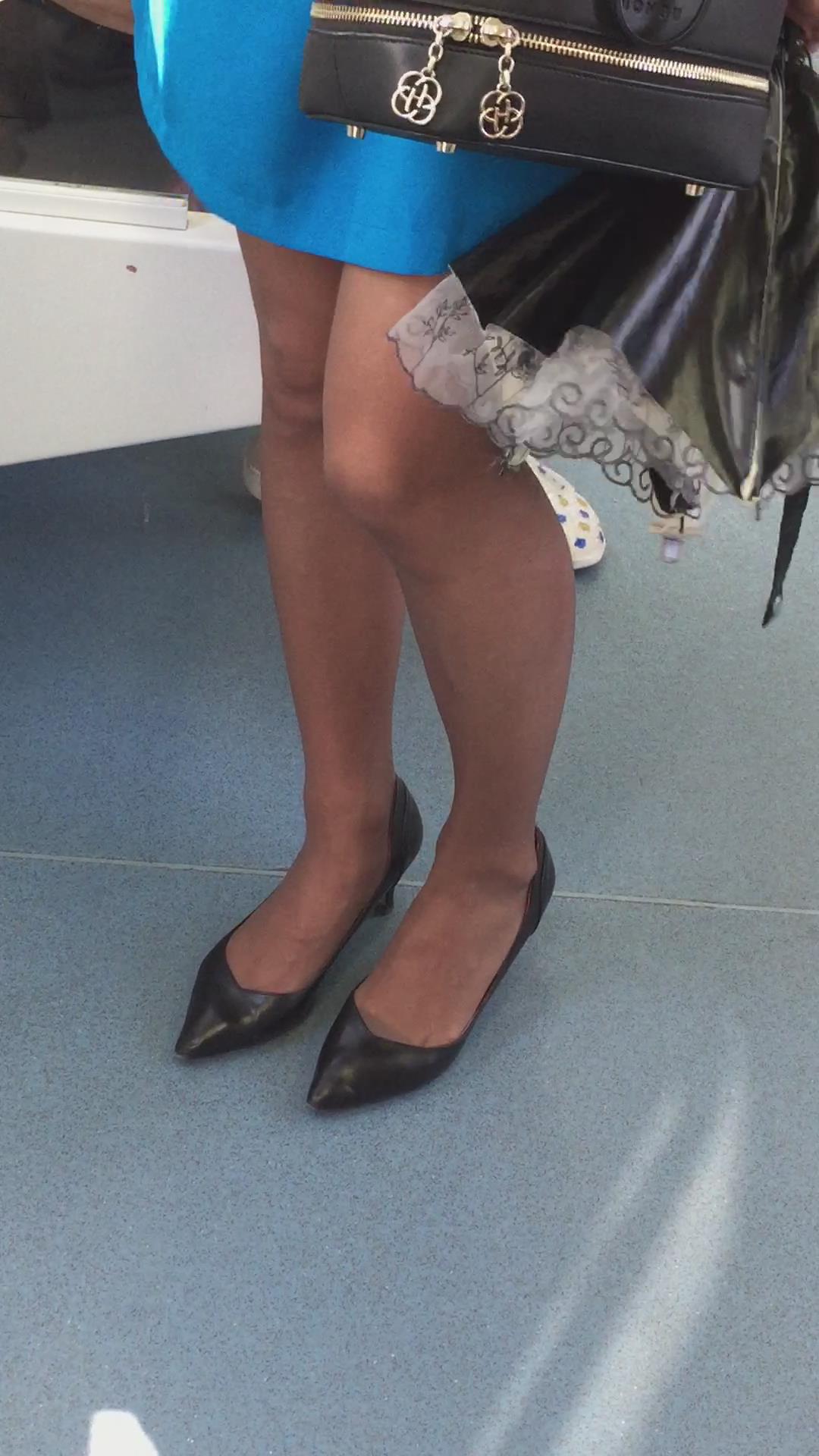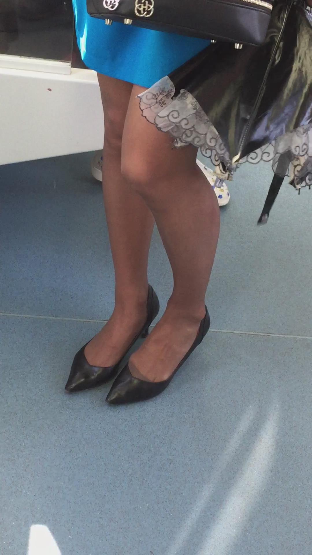 OL制服短裙美女地铁上偷偷晾美脚 编号1696