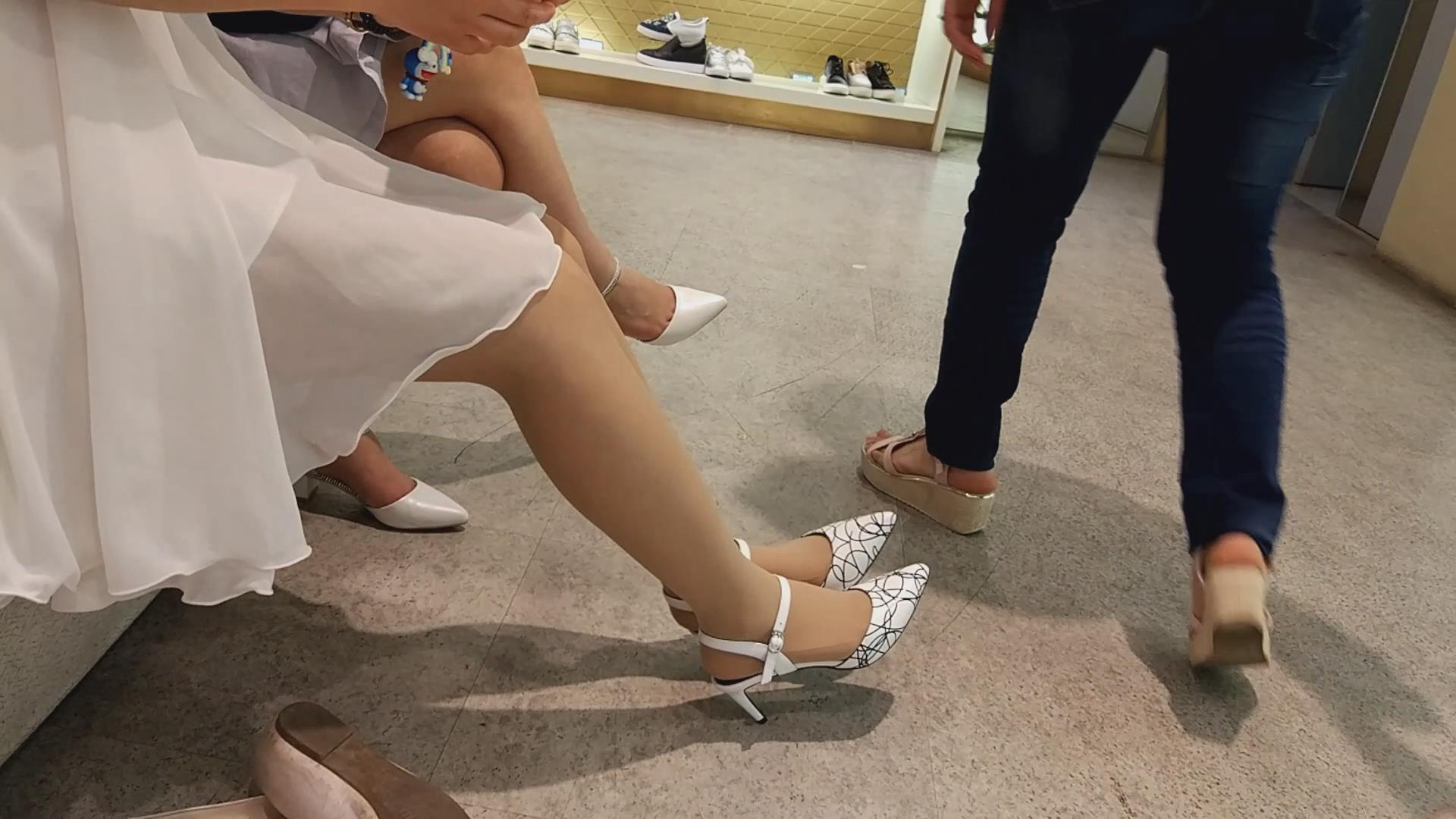 鞋店试鞋的白色连衣裙丝袜美足少妇美女 编号6430 |