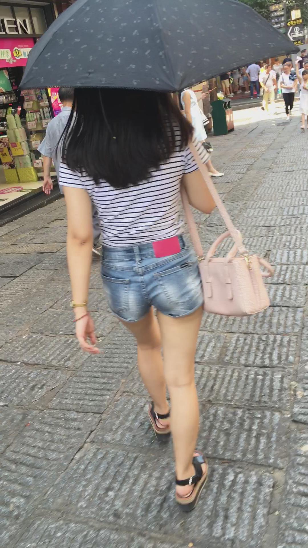 撑伞逛街的牛仔热裤美腿小清新美女。 编号4625 |