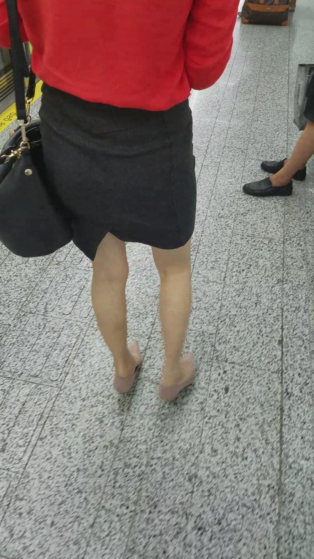 跟拍红衣街拍紧身裙高跟美女 编号2076 |