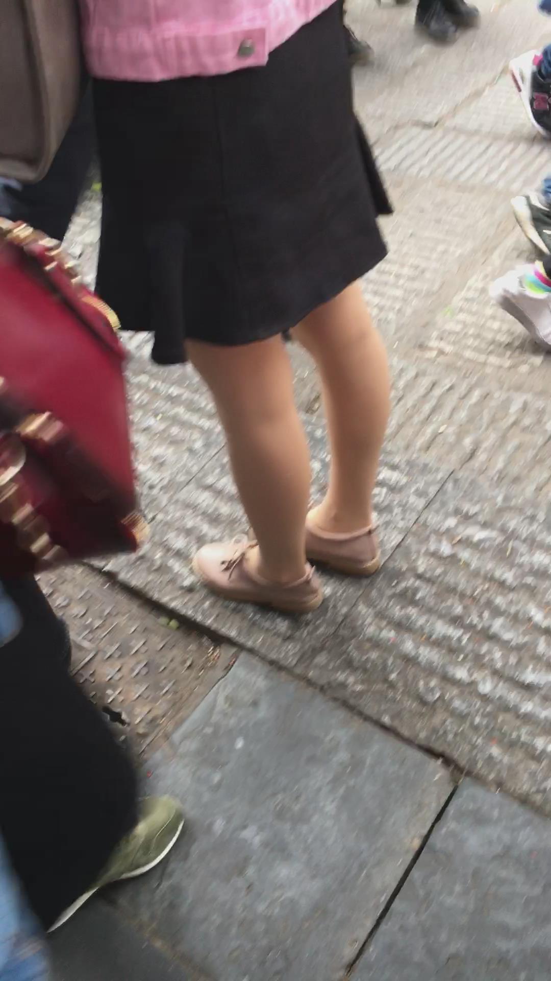 粉衣短裙街拍肉丝清纯小美女 编号2124 |