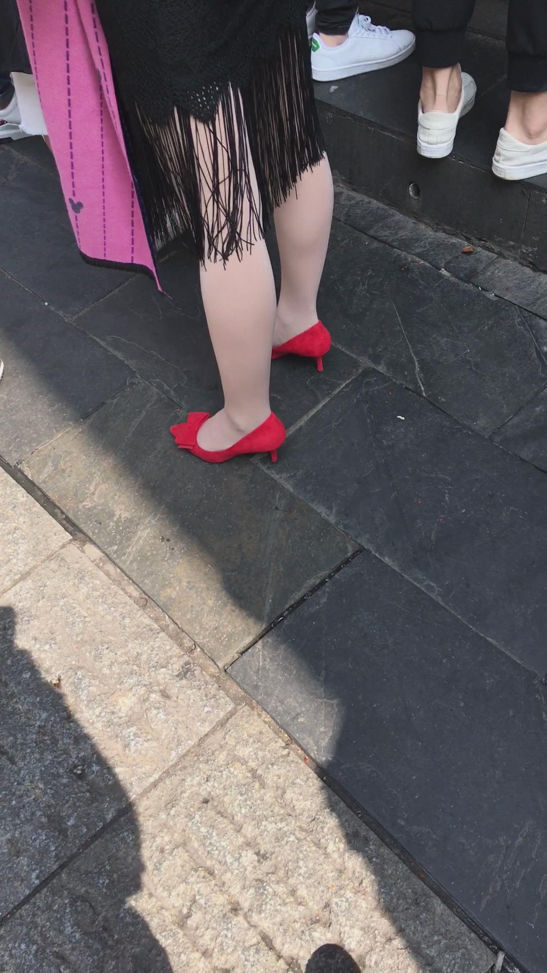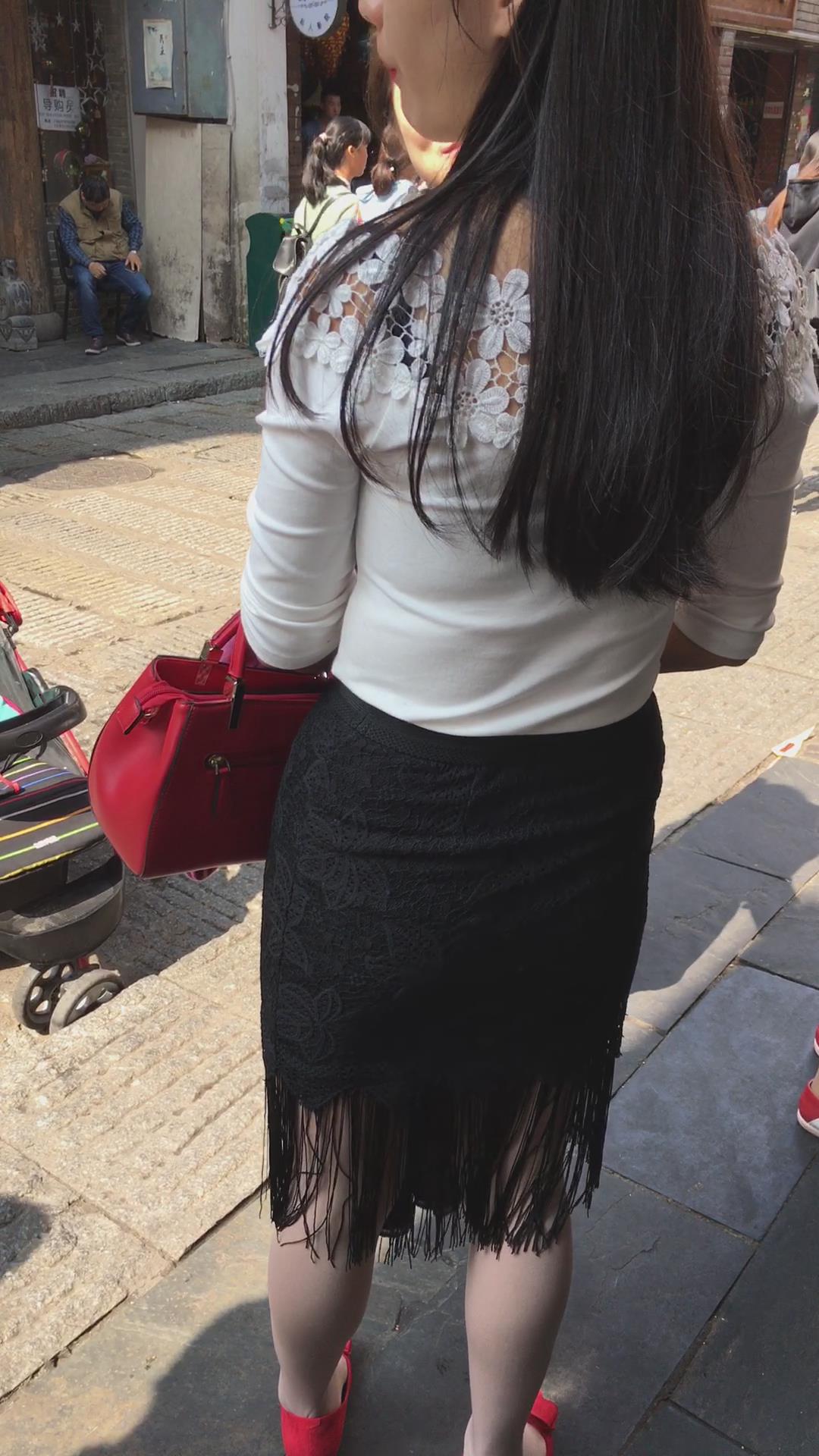 红高跟黑色蕾丝裙性感街拍美女 编号2128 |