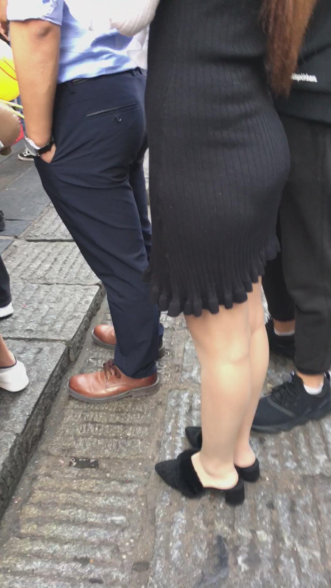 黑色性感包臀裙美眉排队买小吃 编号2134 |