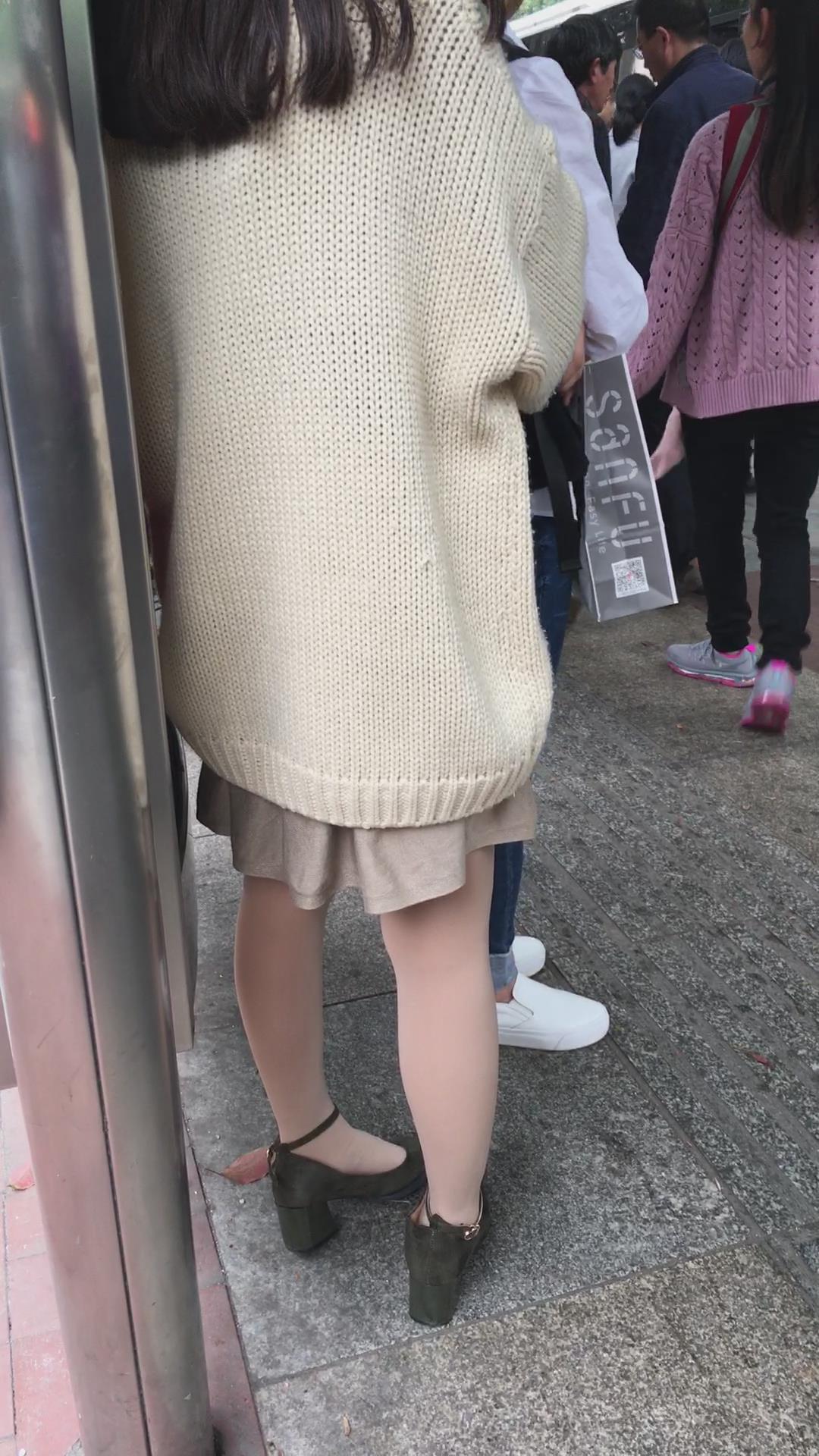 街拍公交站等车的米色毛衣短裙丝袜街拍美腿 编号2139 |