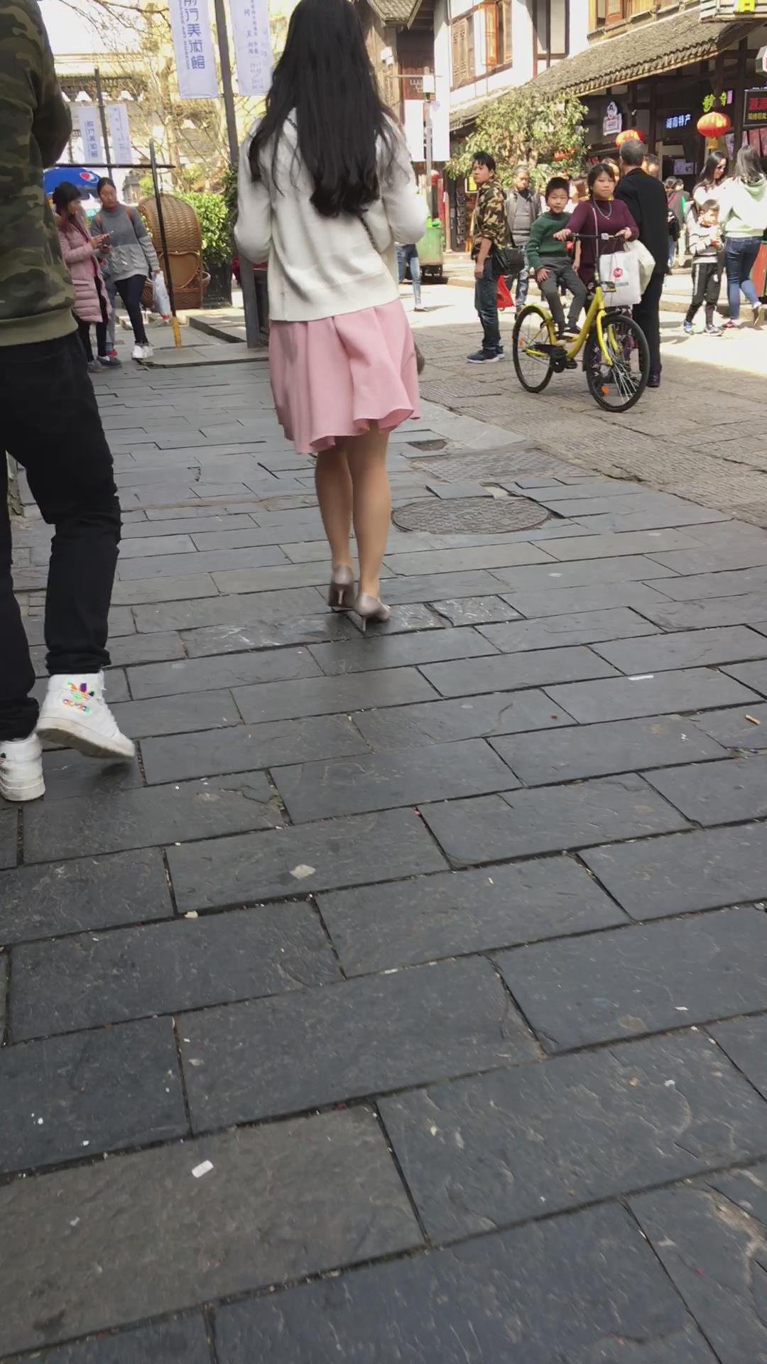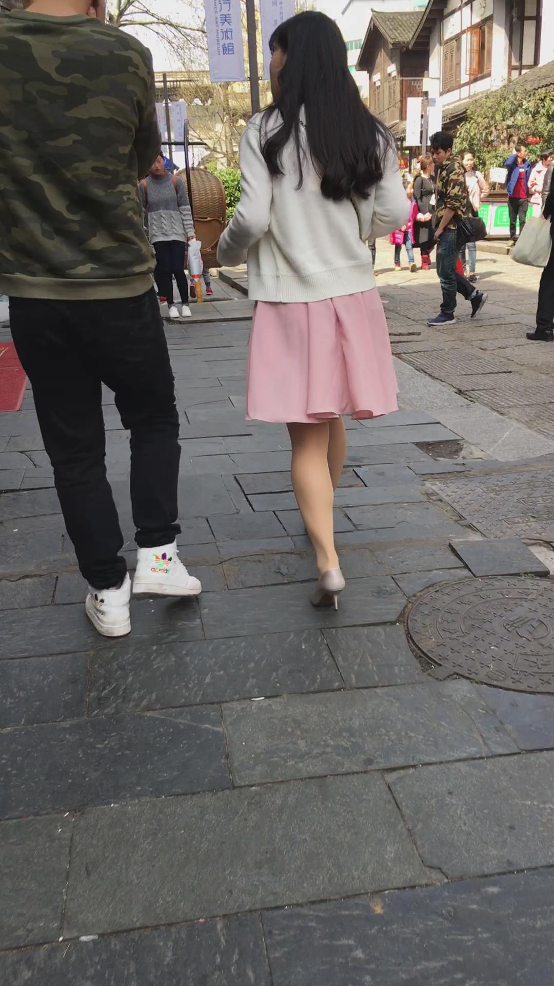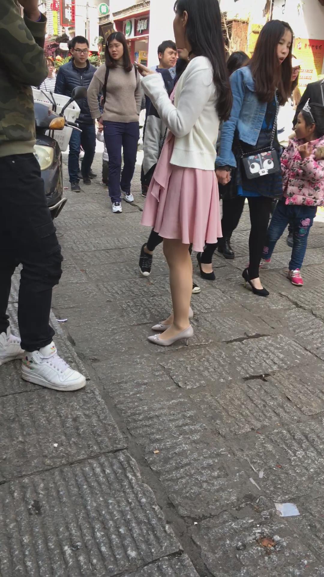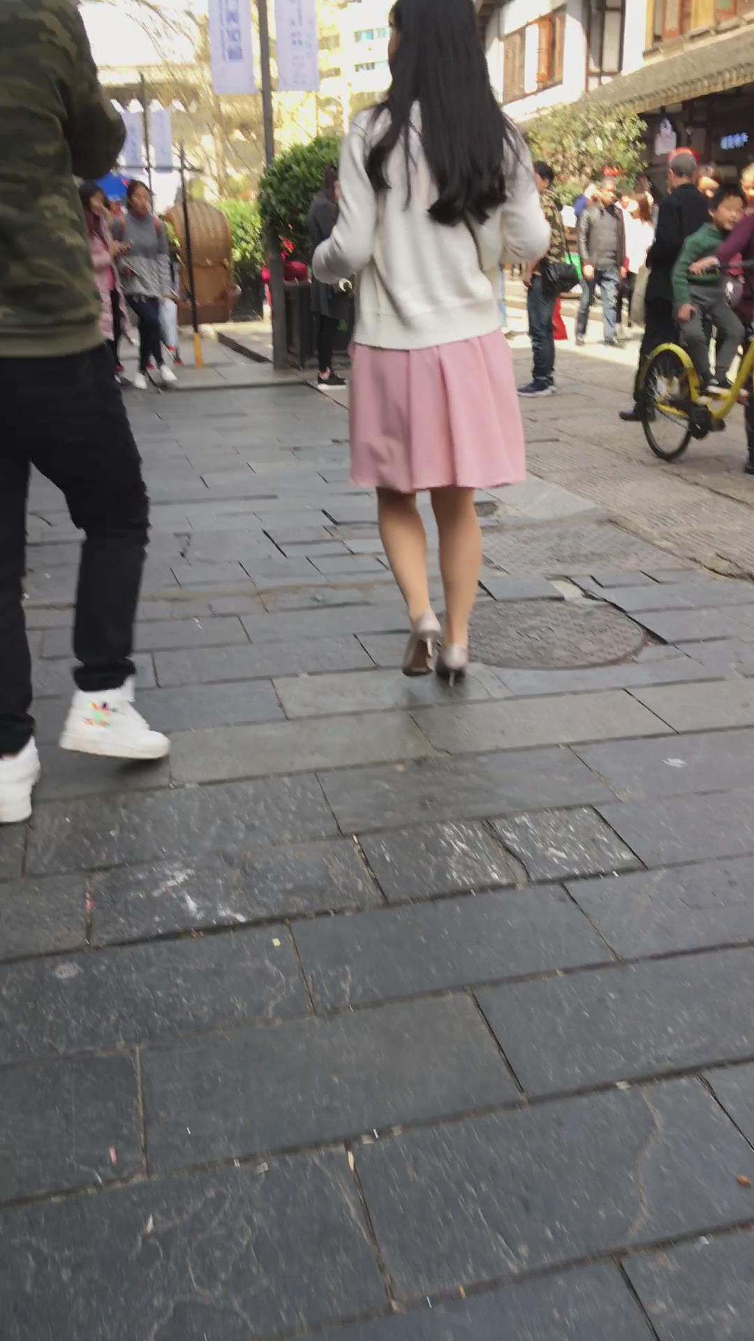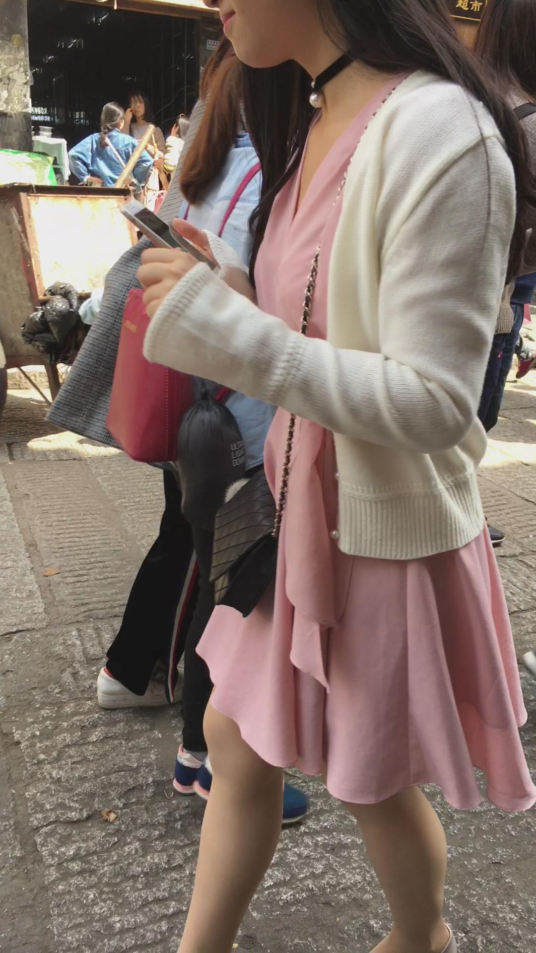 粉色连衣裙白色针织衫高跟鞋街拍美女视频 编号2156 |