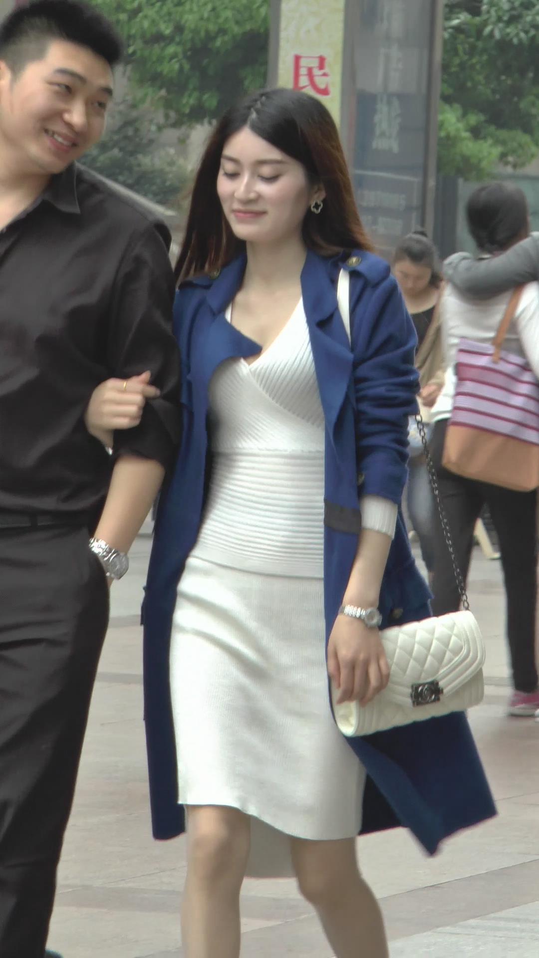 街拍白色连衣裙文静甜美小姐姐 编号2171 |