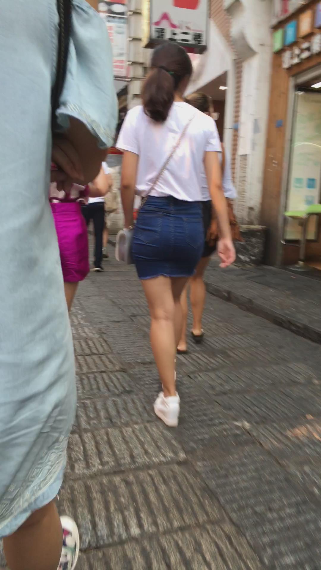 白T恤包臀牛仔裙气质街拍美女 编号2176 |
