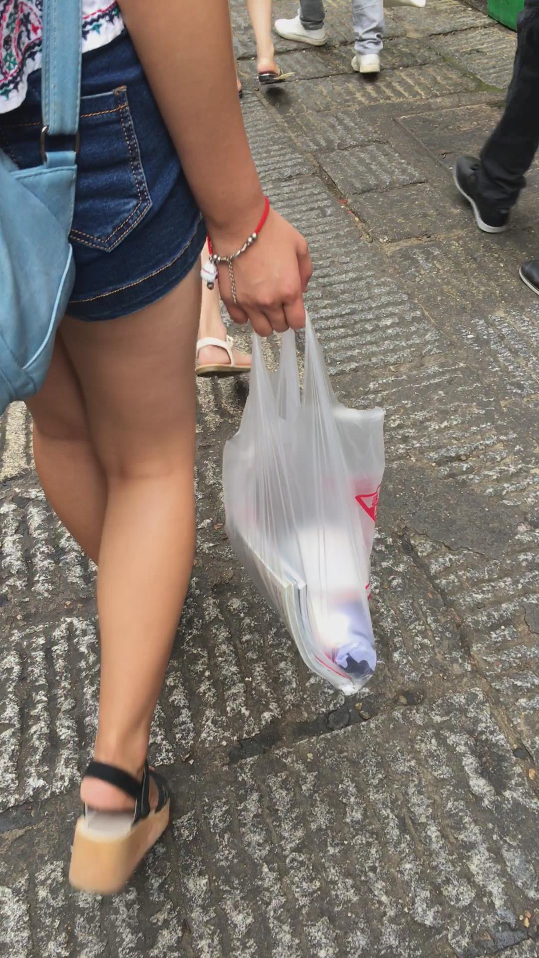街拍牛仔短裙白T恤娇小身材可爱小美女 编号2181 |