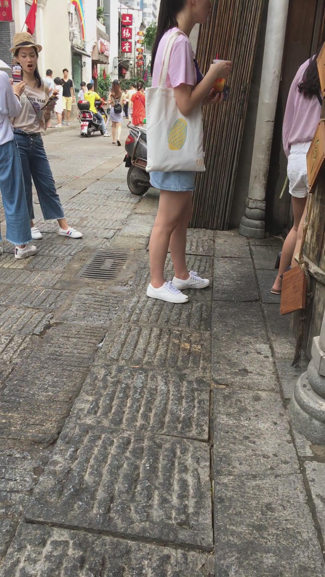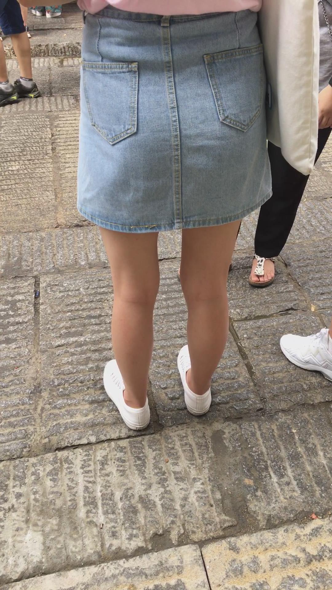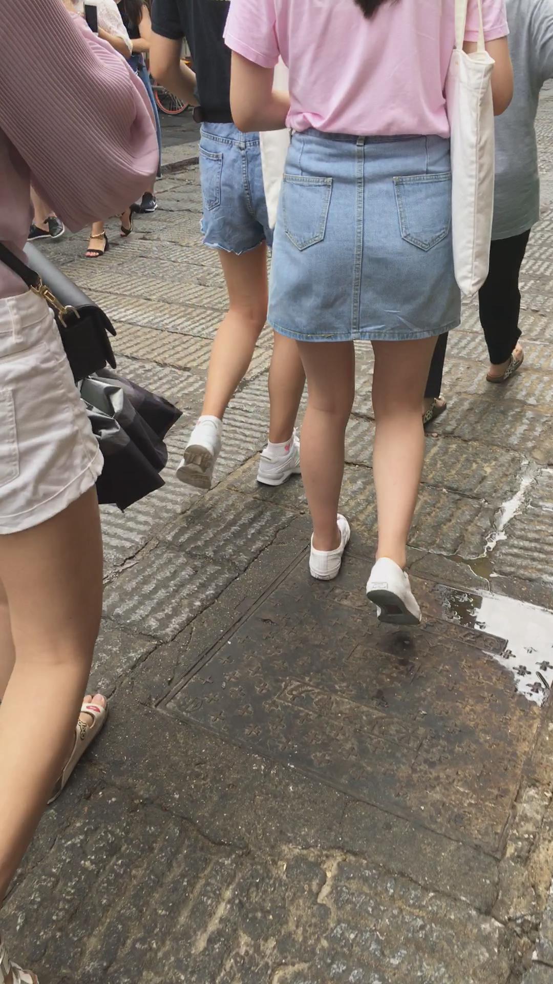 街拍粉T恤牛仔裙清纯小妹 编号2221 |