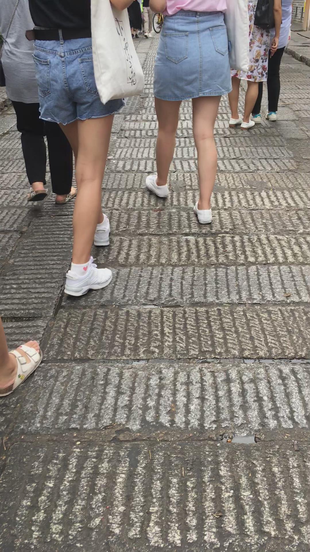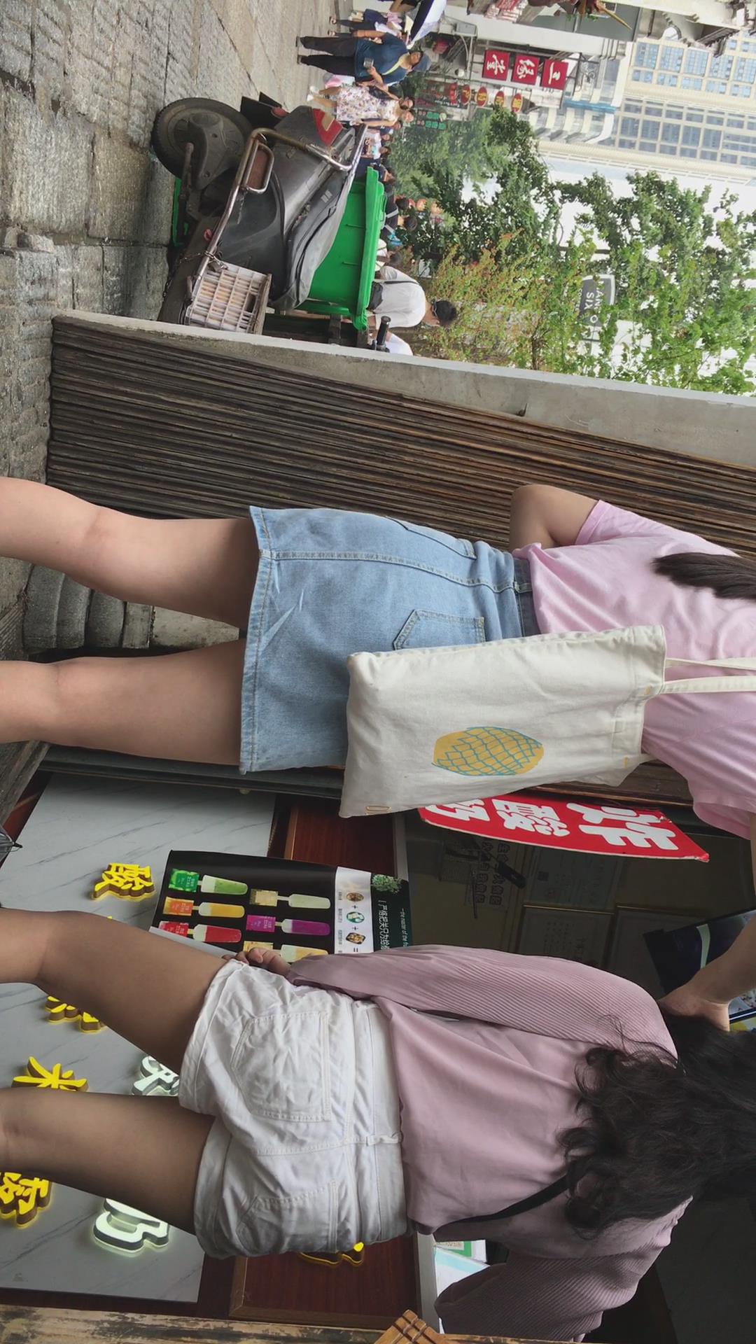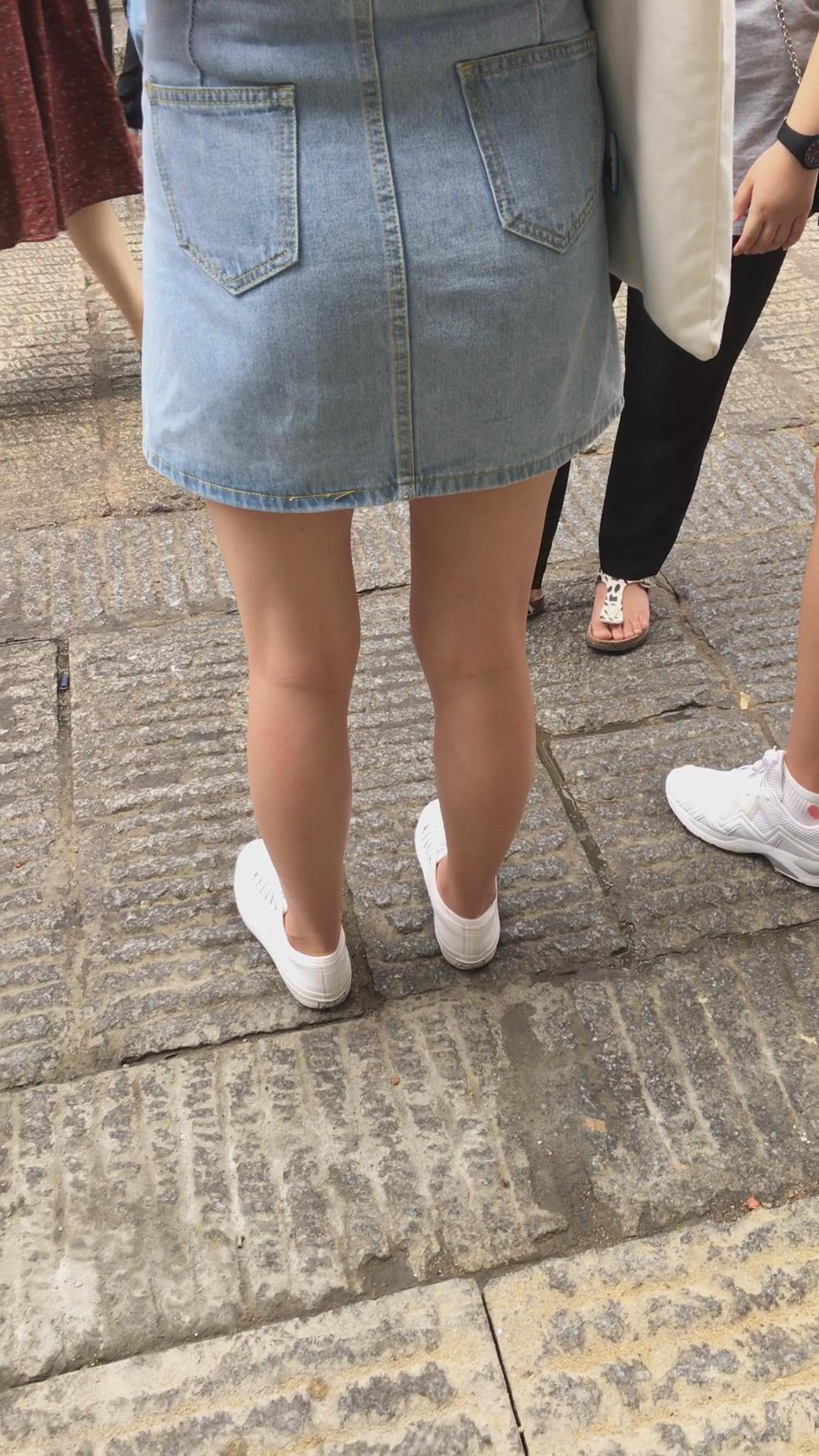 街拍粉T恤牛仔裙清纯小妹 编号2221 |