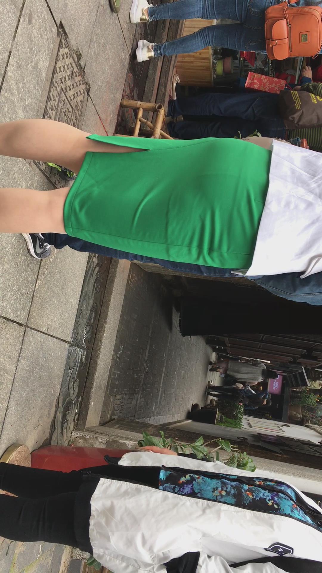 街拍绿色OL包臀裙高跟鞋轻熟女,很有韵味 编号2360 |