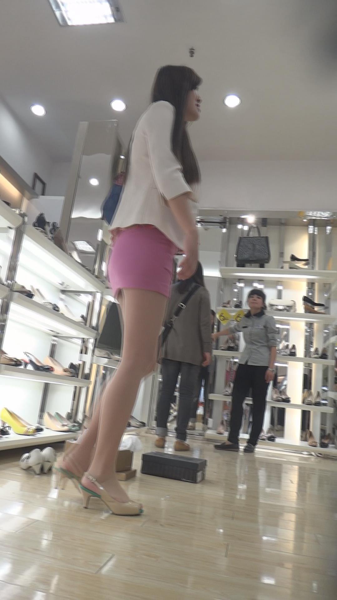 鞋店试鞋的极品粉色包臀裙丝袜美女 编号2367 |