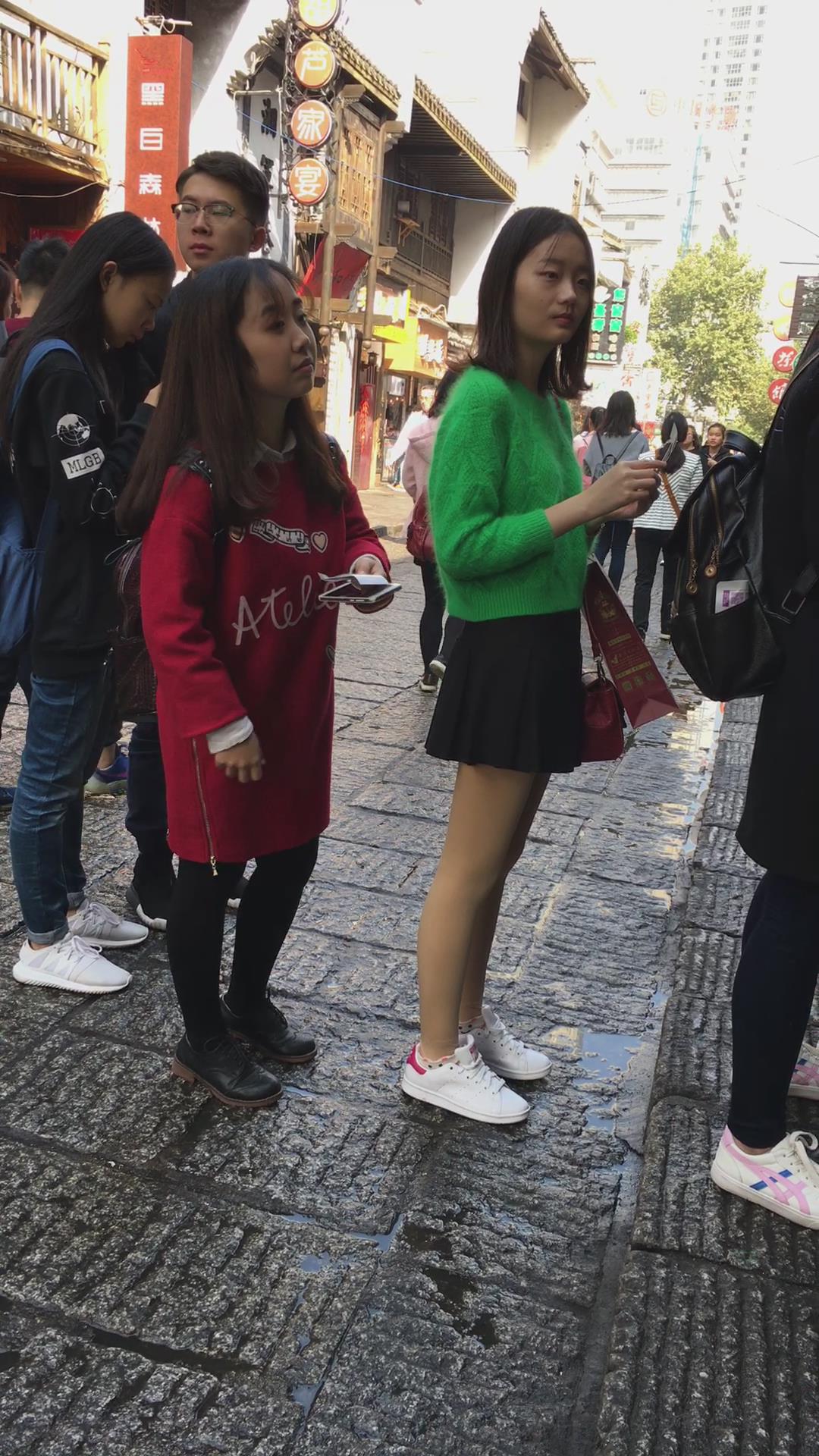 排队的绿色毛衣肉丝袜短裙青春小美女 编号2382 |