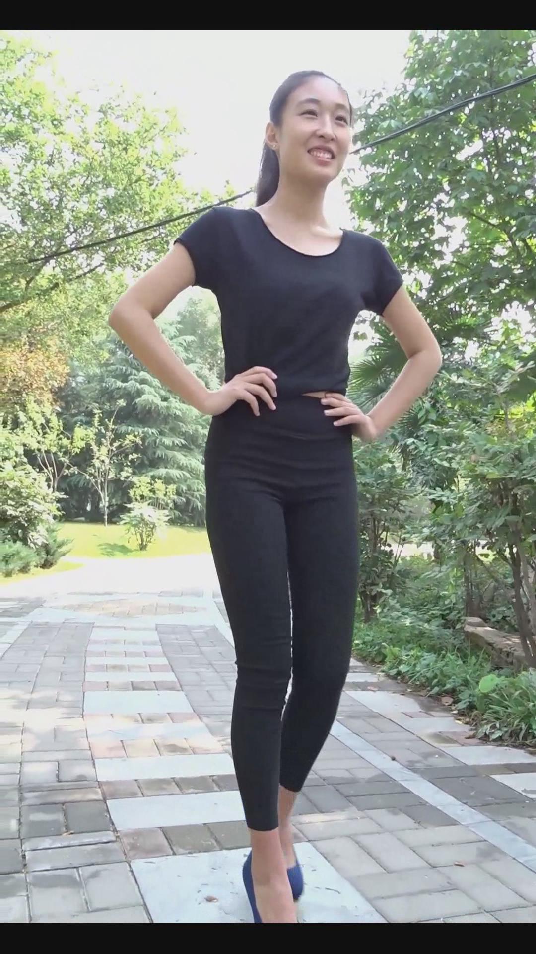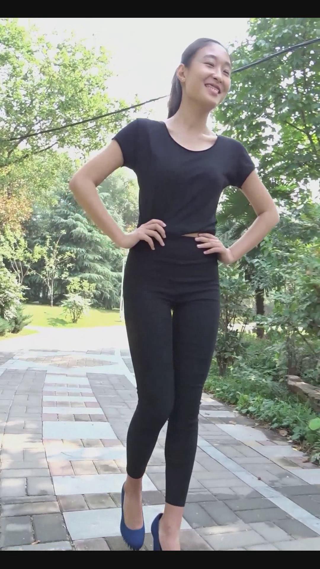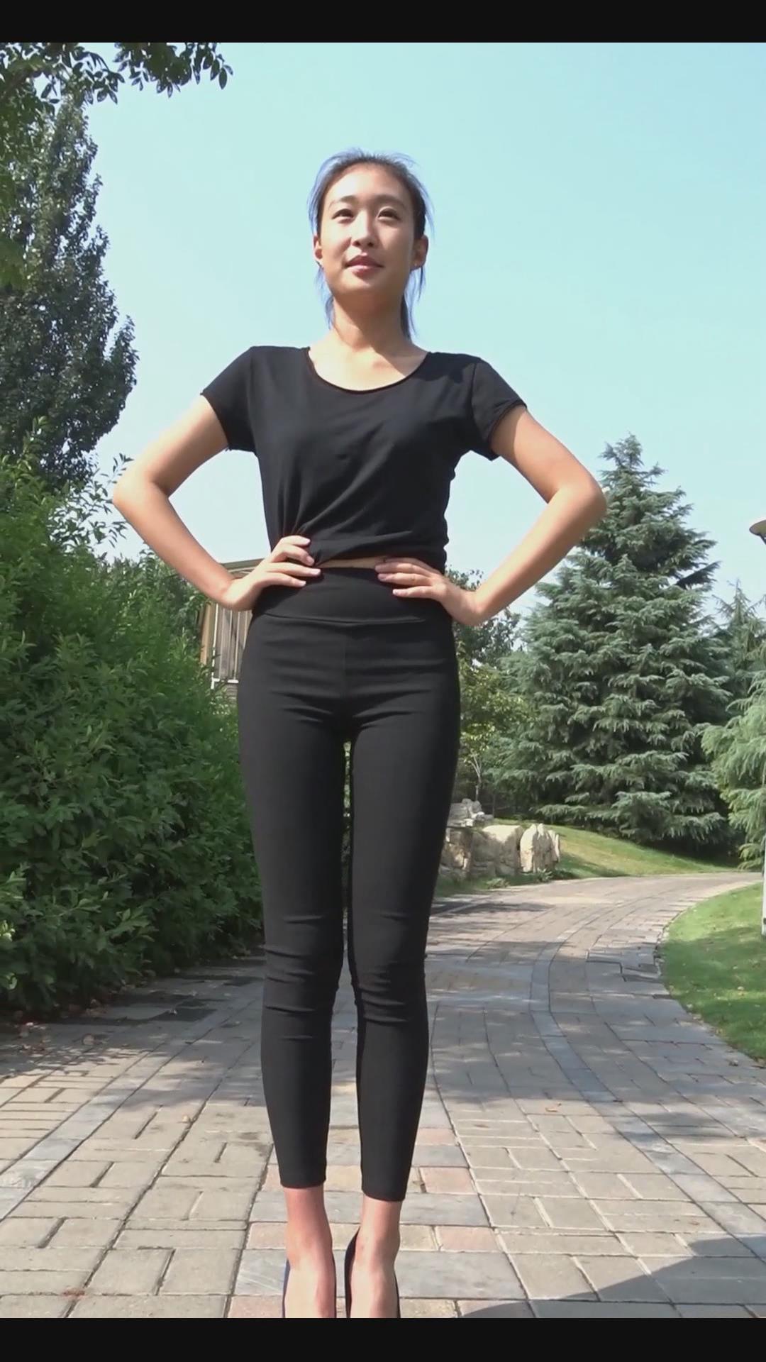 蓝色高跟长腿马尾辫美女公园拍摄 编号6899 |