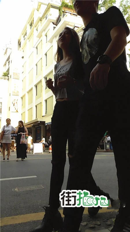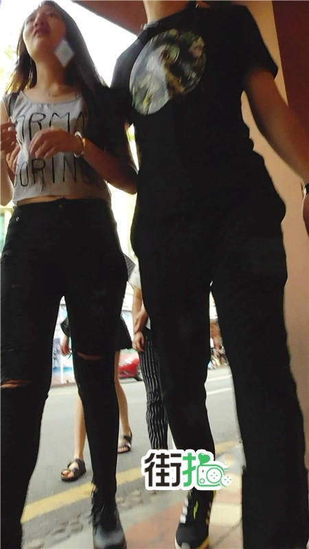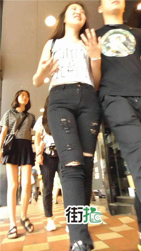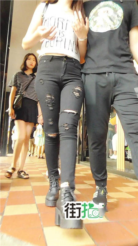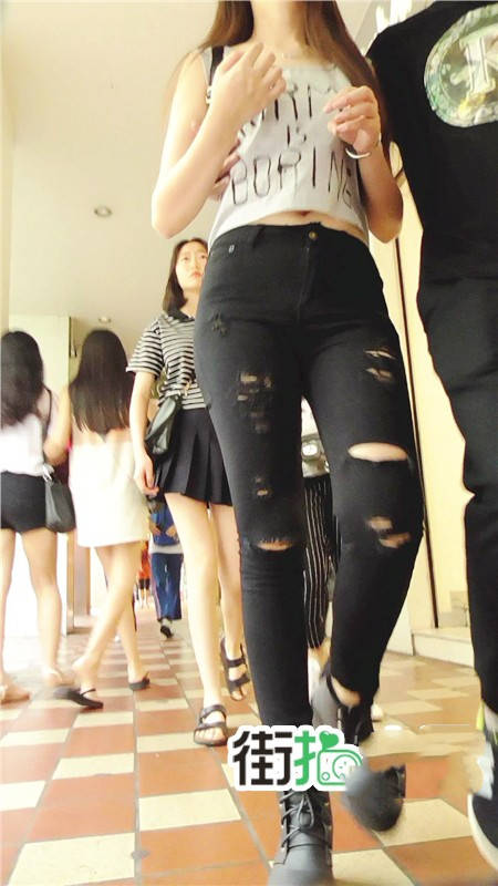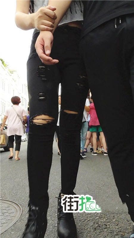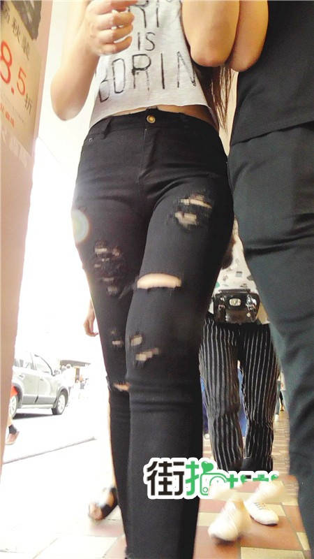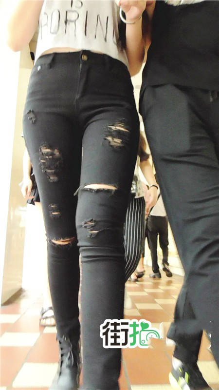 【编号740】街拍时尚紧身破洞黑色牛仔裤MM |