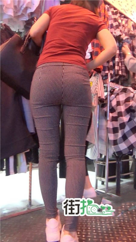 【编号752】街拍条纹布裤紧身丰臀美女 |