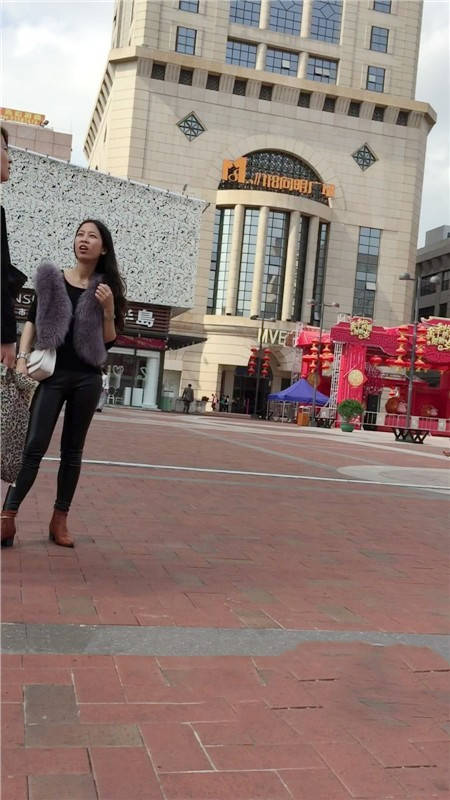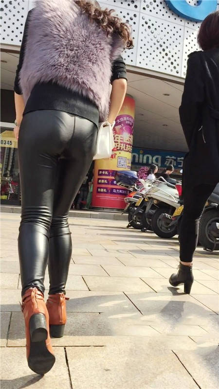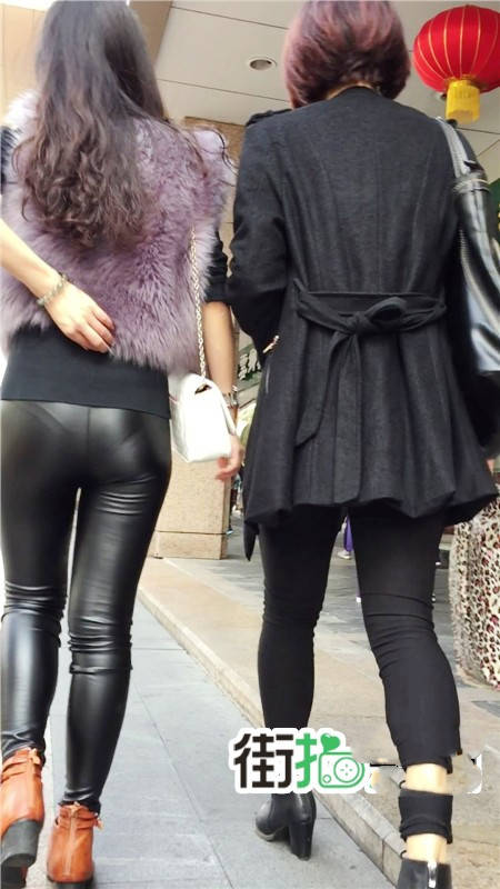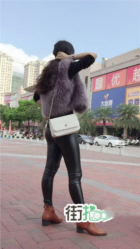 【编号760】街拍紫色貂绒紧身皮裤 |