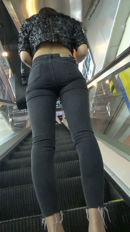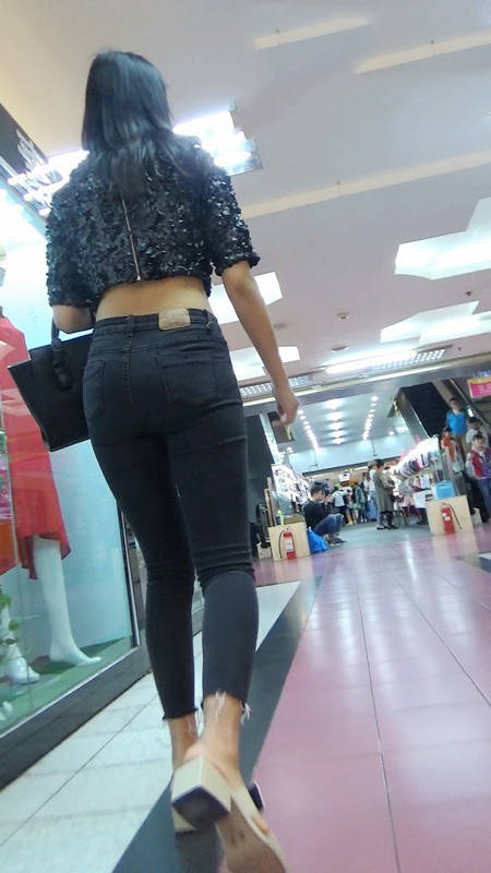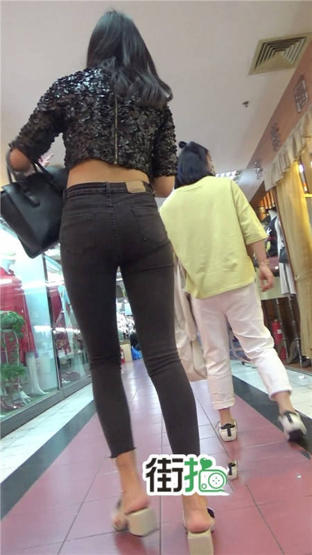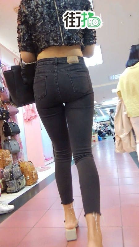 【编号789】街拍极品紧身黑色牛仔裤美女 |