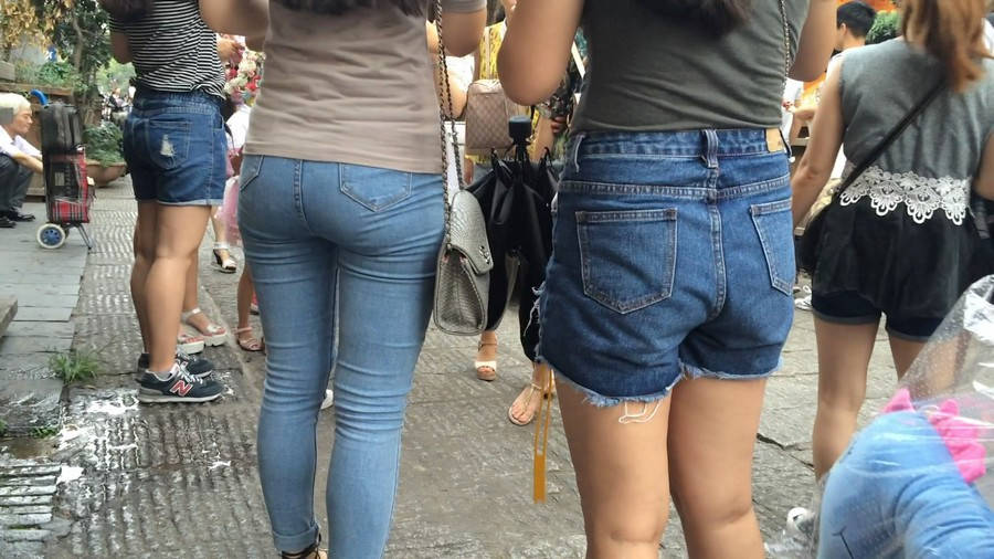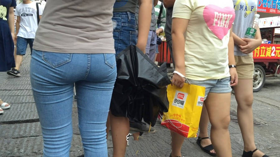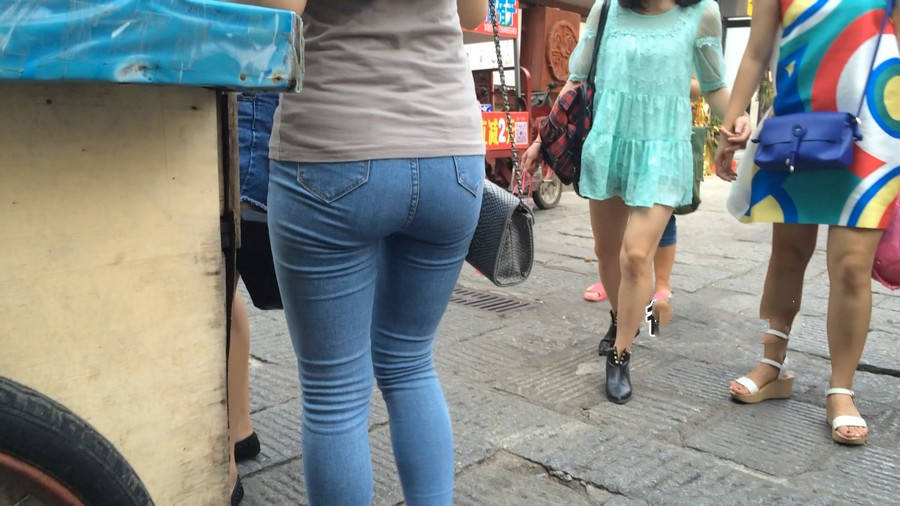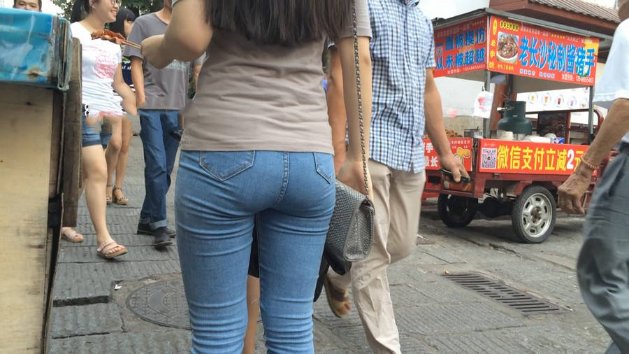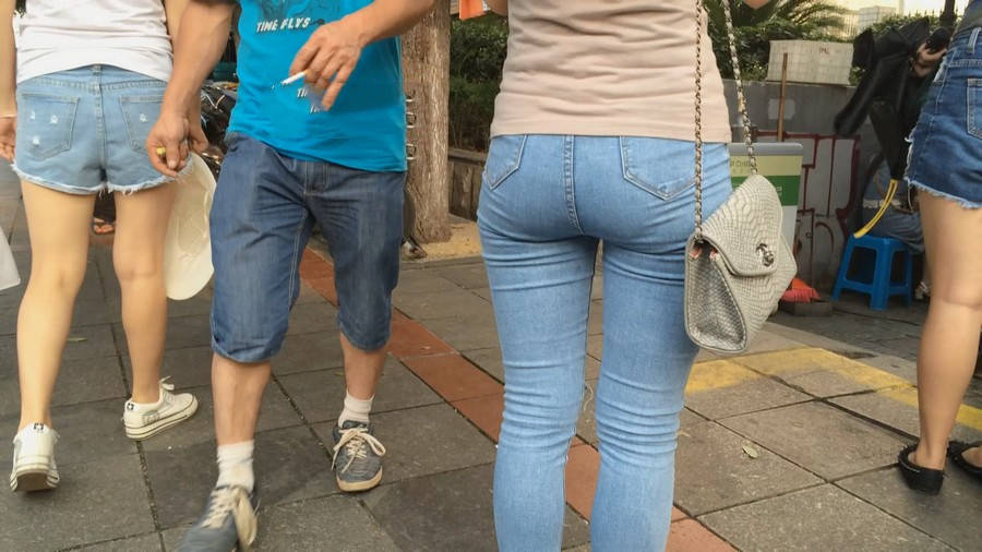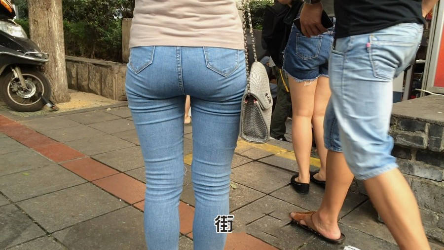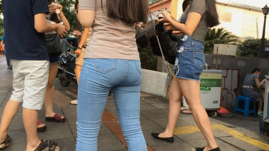 【编号880】街拍紧身牛仔裤美女买小吃 |