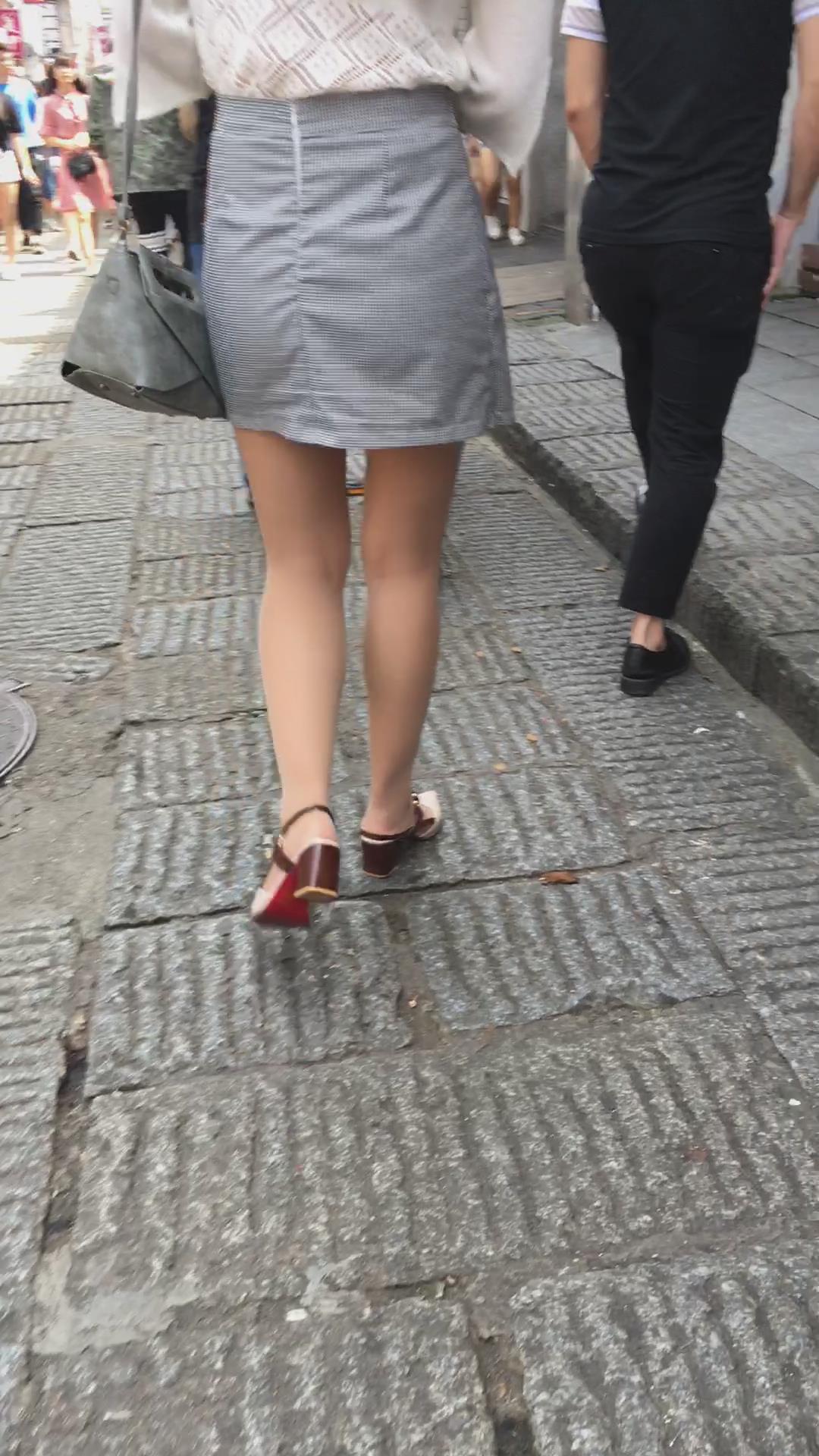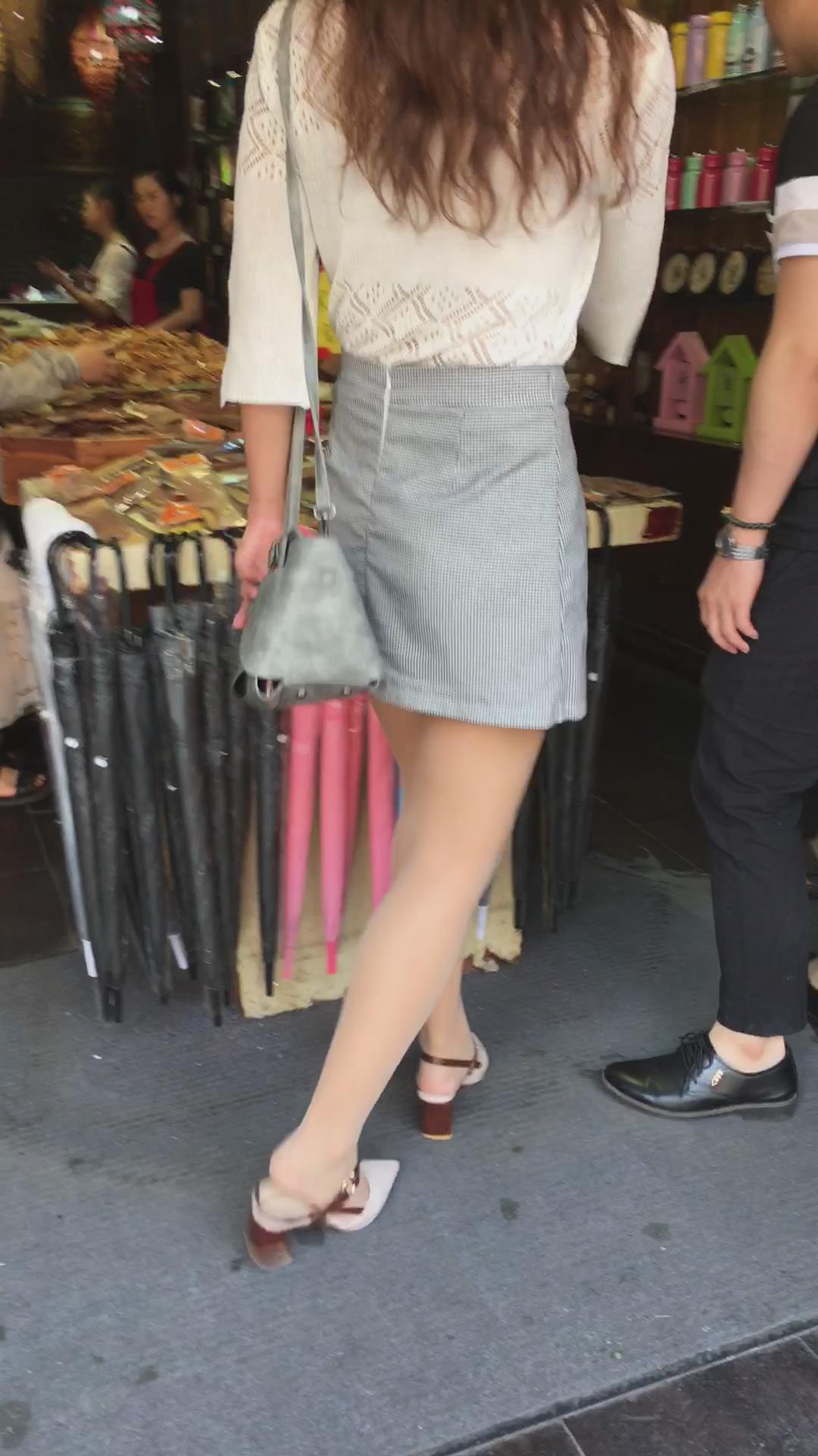 街拍裸腿高腰短裙美女,镂空衣也不错 编号2024 |