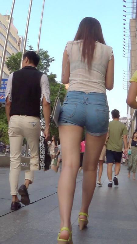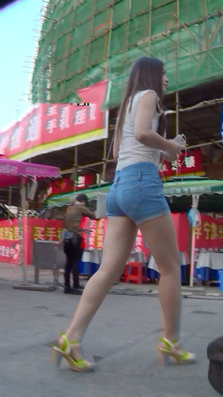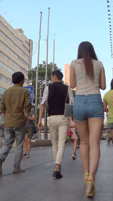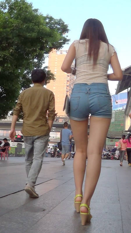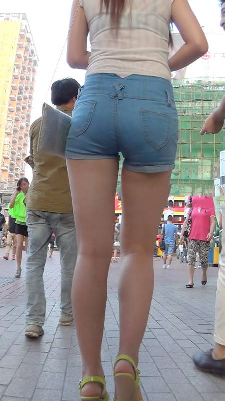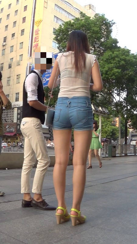 【编号982】街拍牛仔热裤美女上衣有点透 |
