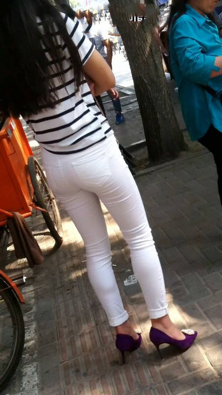 【编号1076】街拍等公交的长发白裤妹妹 |