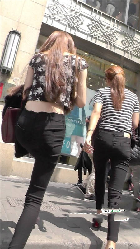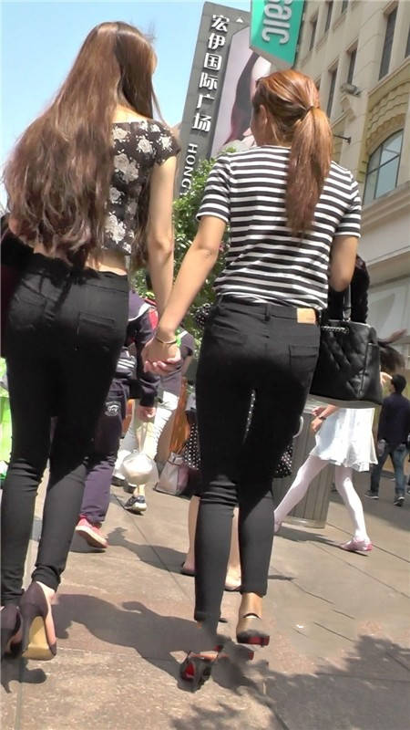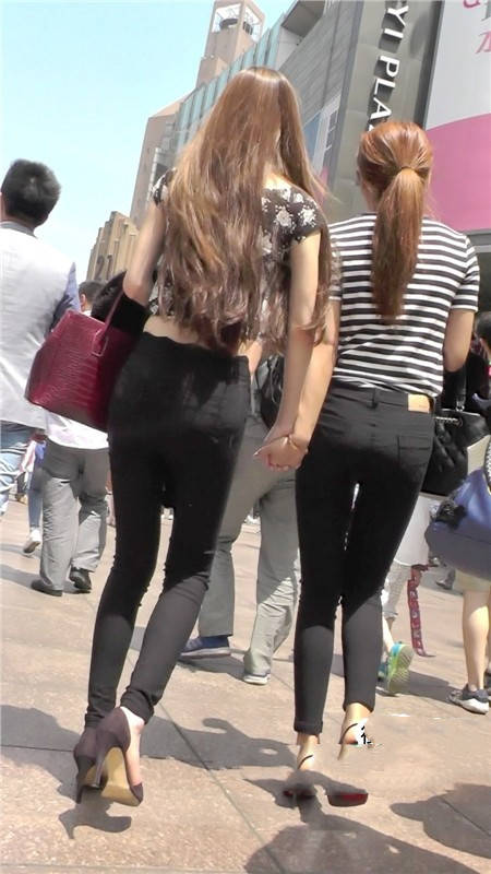 【编号1104】街拍黑色紧身裤时尚苗条双姝 |