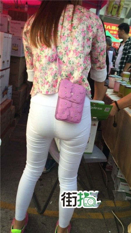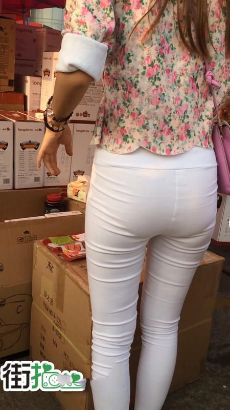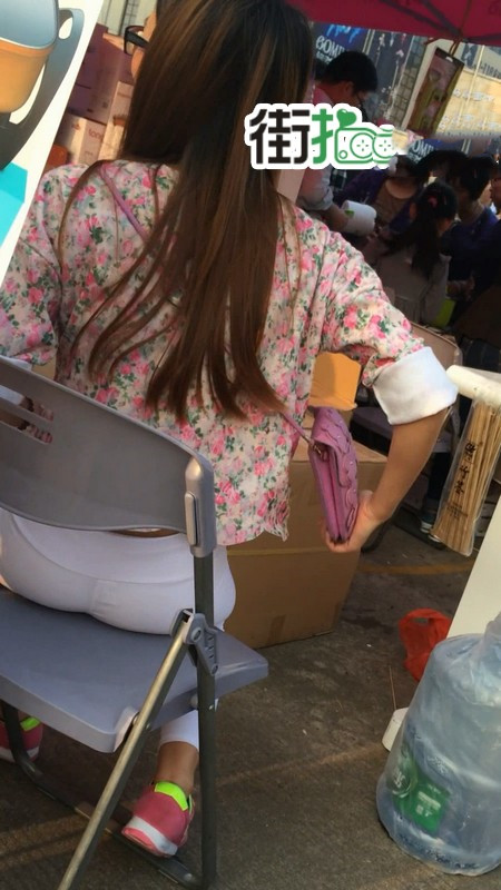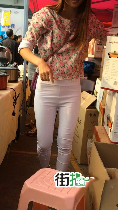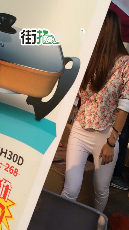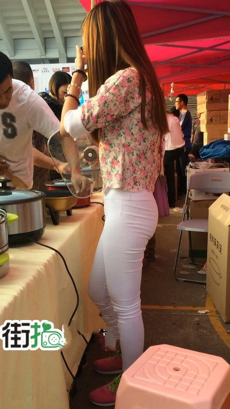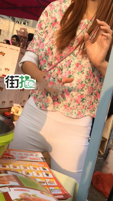 【编号763】街拍白色紧身裤促销小妹 |