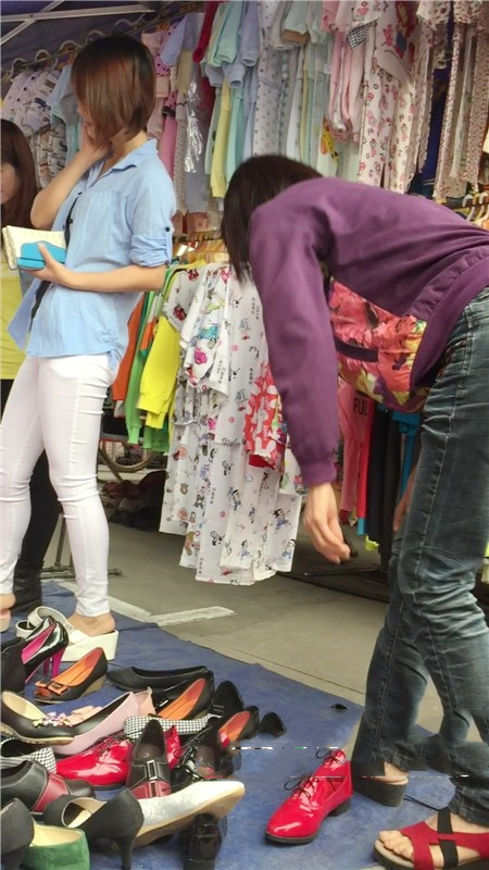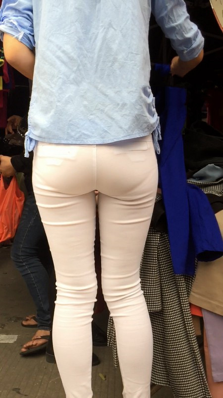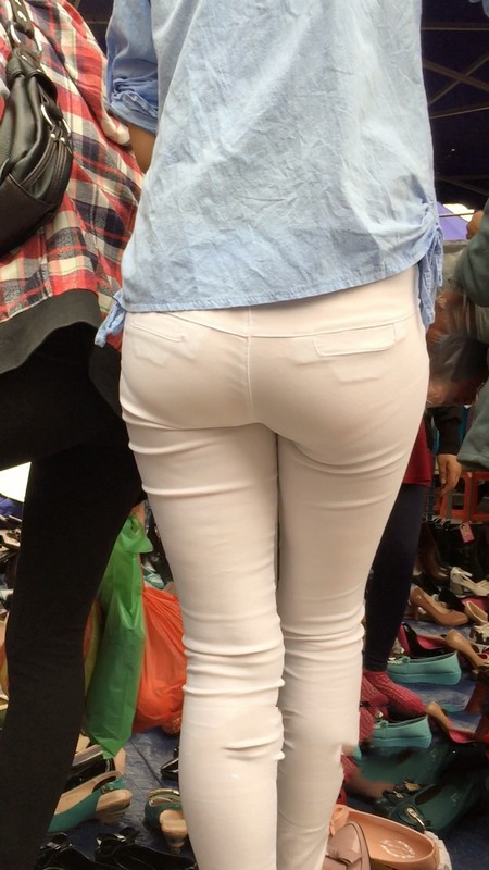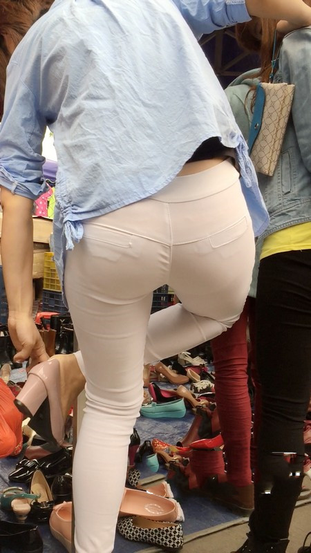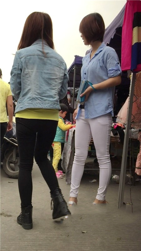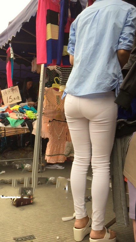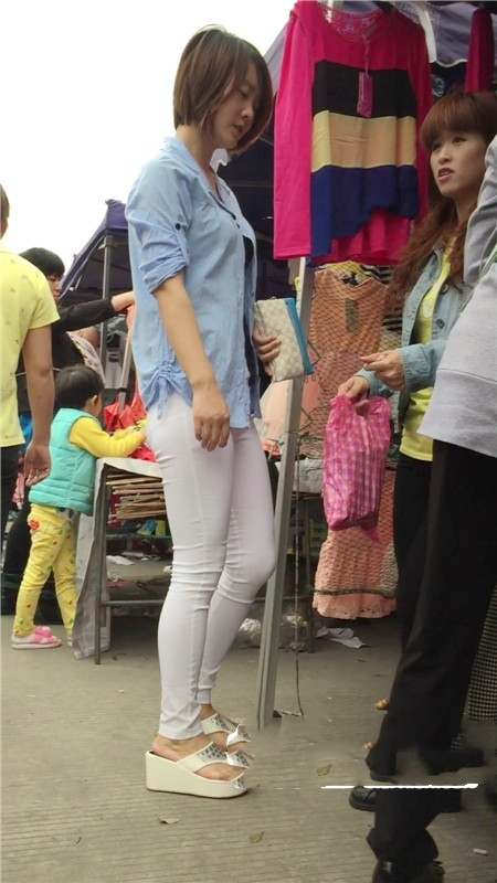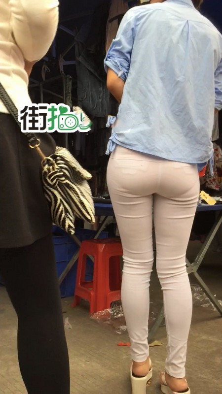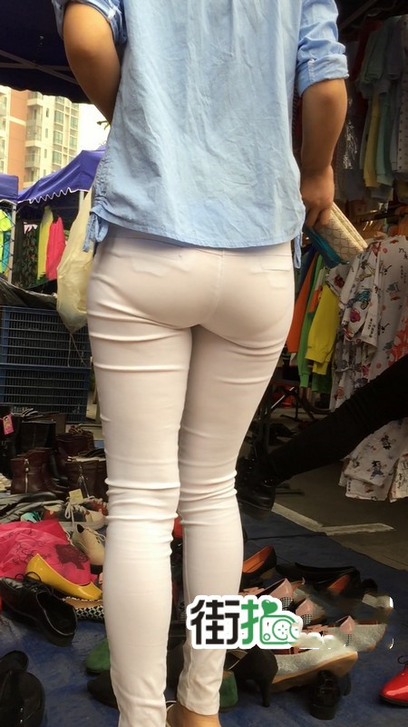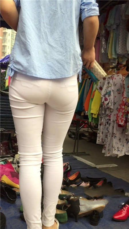【编号767】街拍紧身白裤苗条女孩买鞋 |