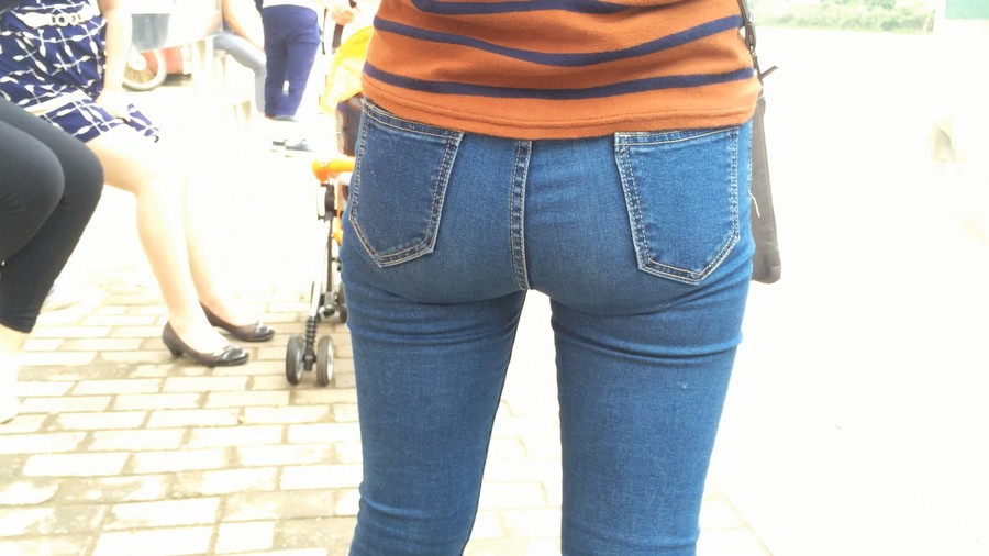 【编号860】街拍紧身蓝牛少妇等公交 |