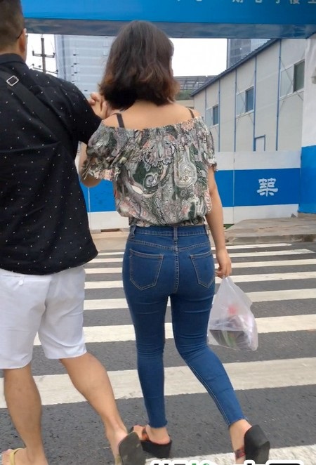 【编号1161】街拍紧身牛仔裤MM被男友摸屁股 |