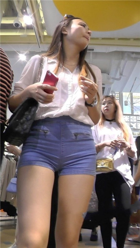 【编号1167】街拍紧身牛仔短裤美女逛商场 |