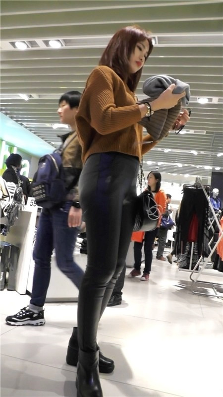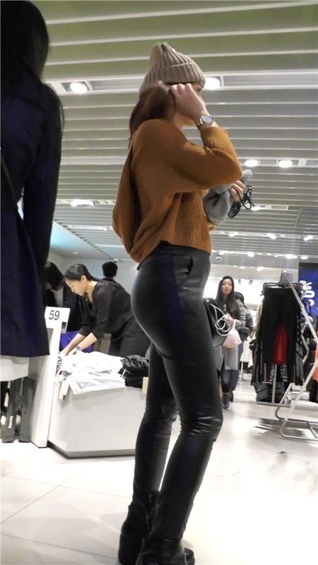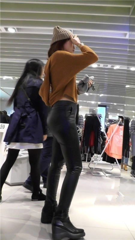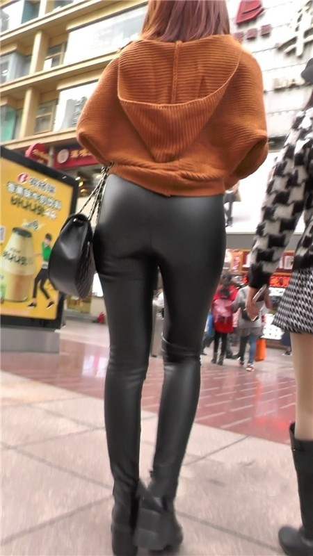 【编号1180】街拍黑色紧身皮裤美女浑圆的翘臀 |