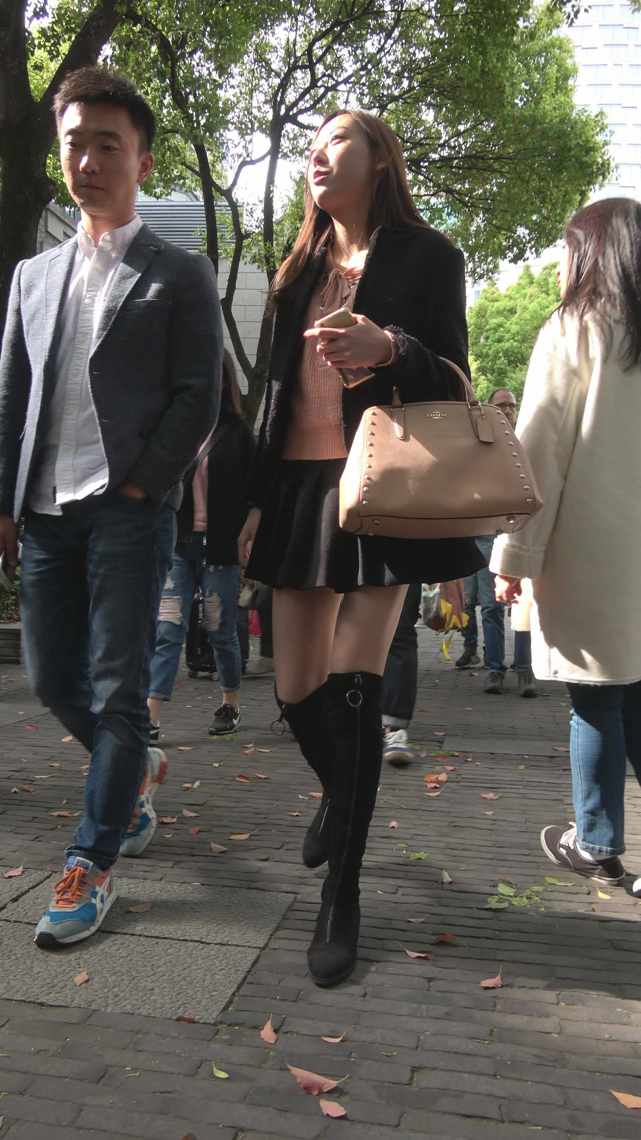 性感黑色小短裙街拍美腿气质美女 编号7910