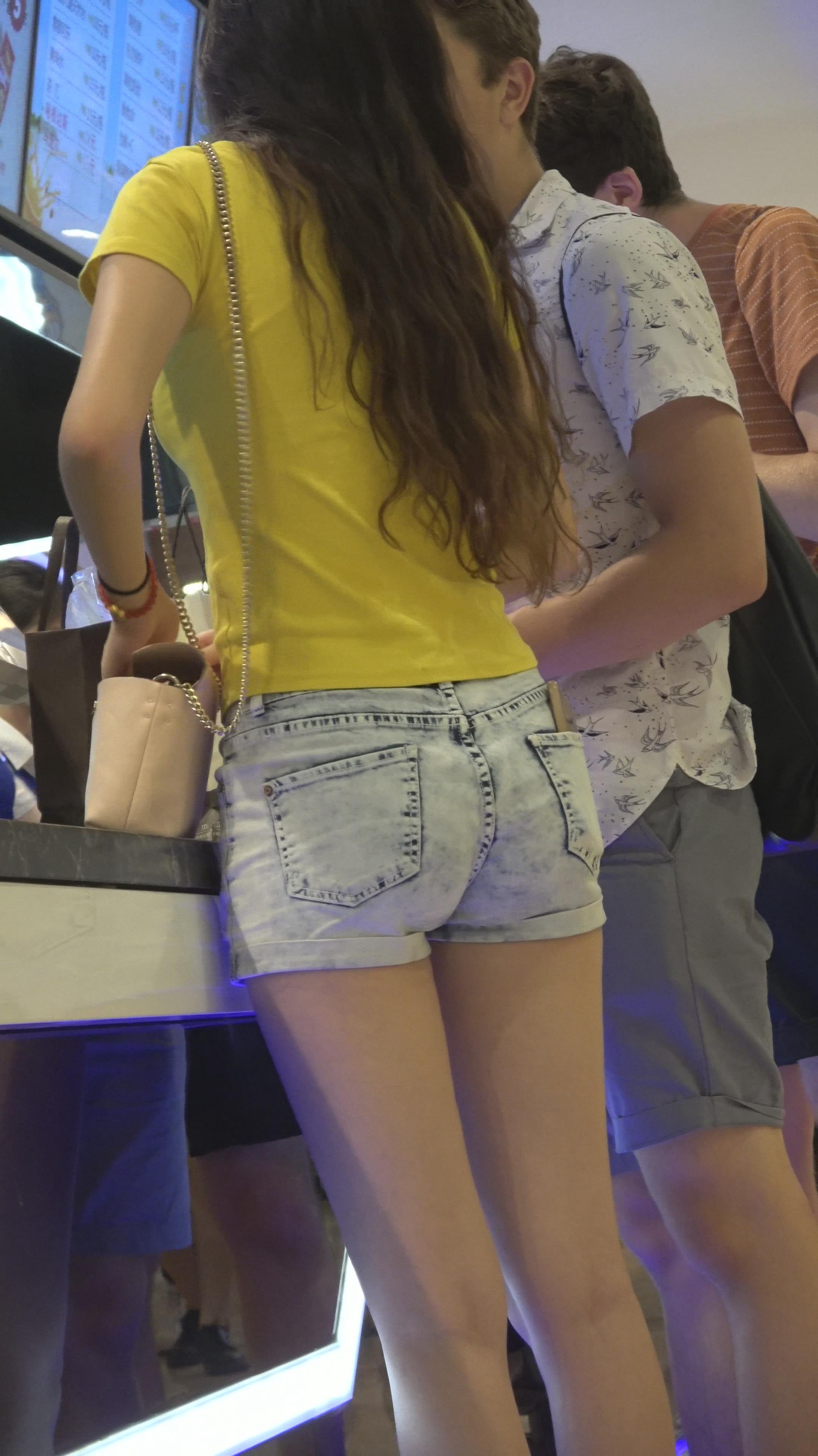 4K 黄色T恤街拍牛仔热裤小姐姐 编号3114 |