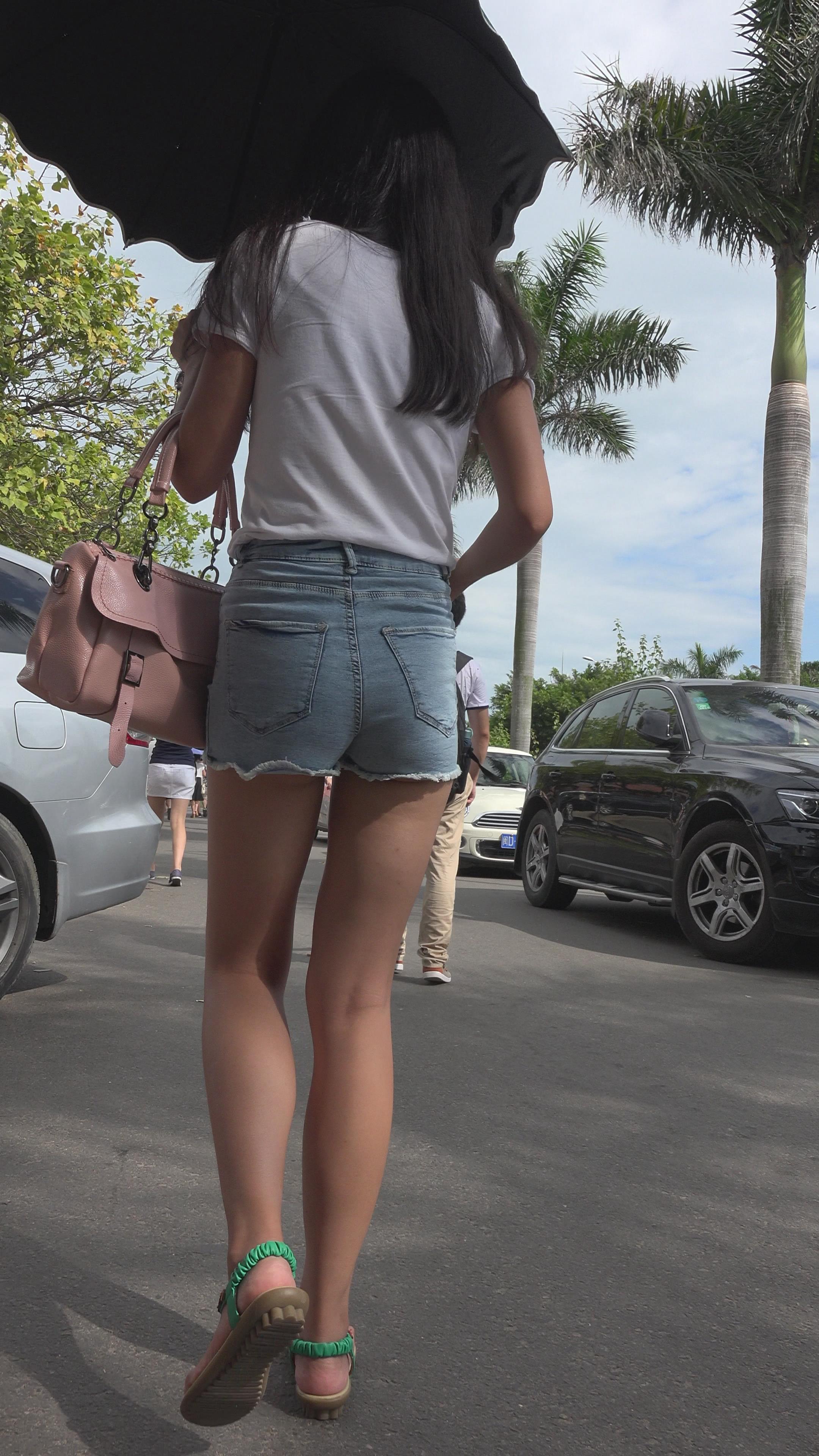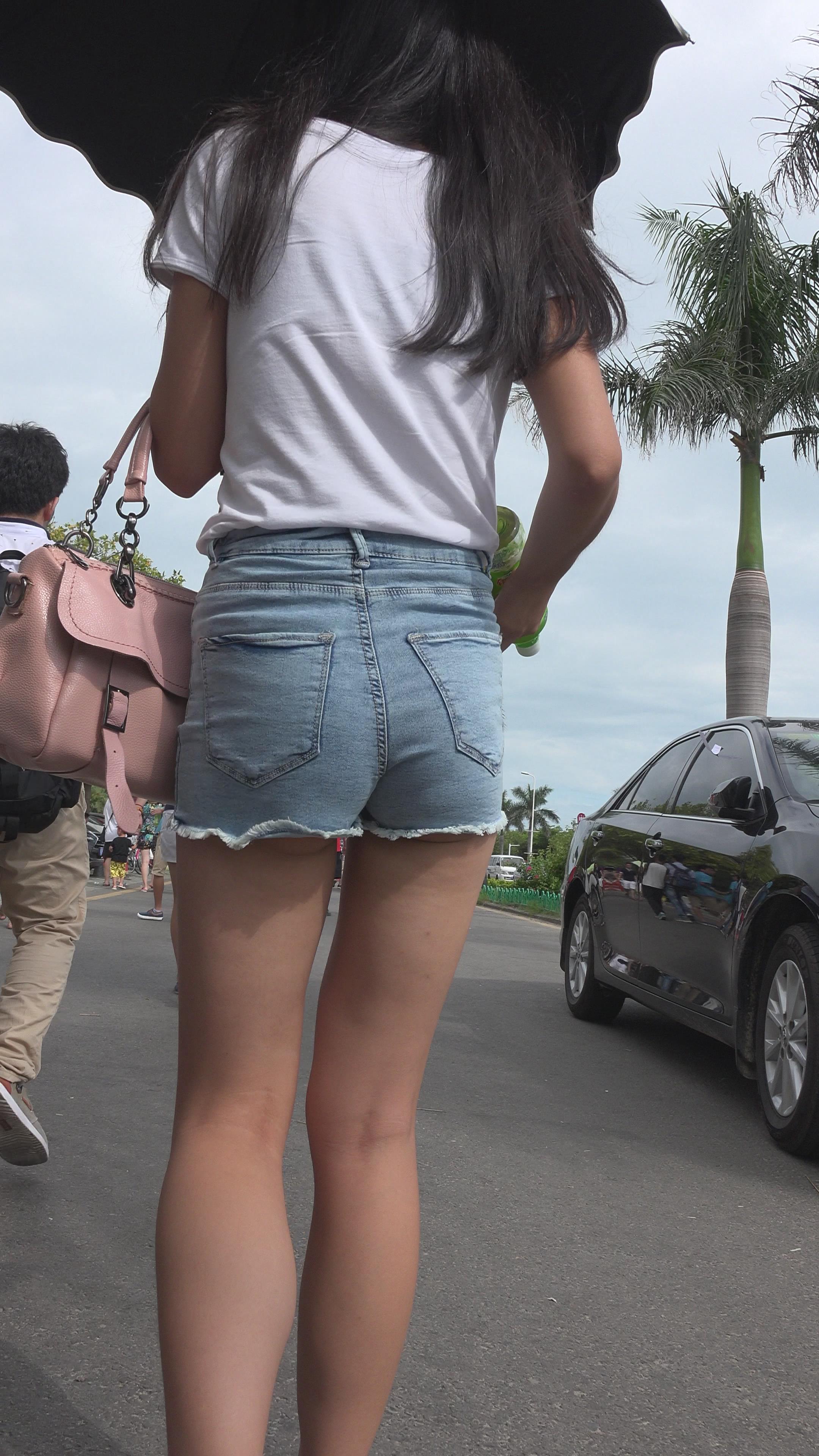 街拍漂亮苹果臀热裤美眉 编号3133