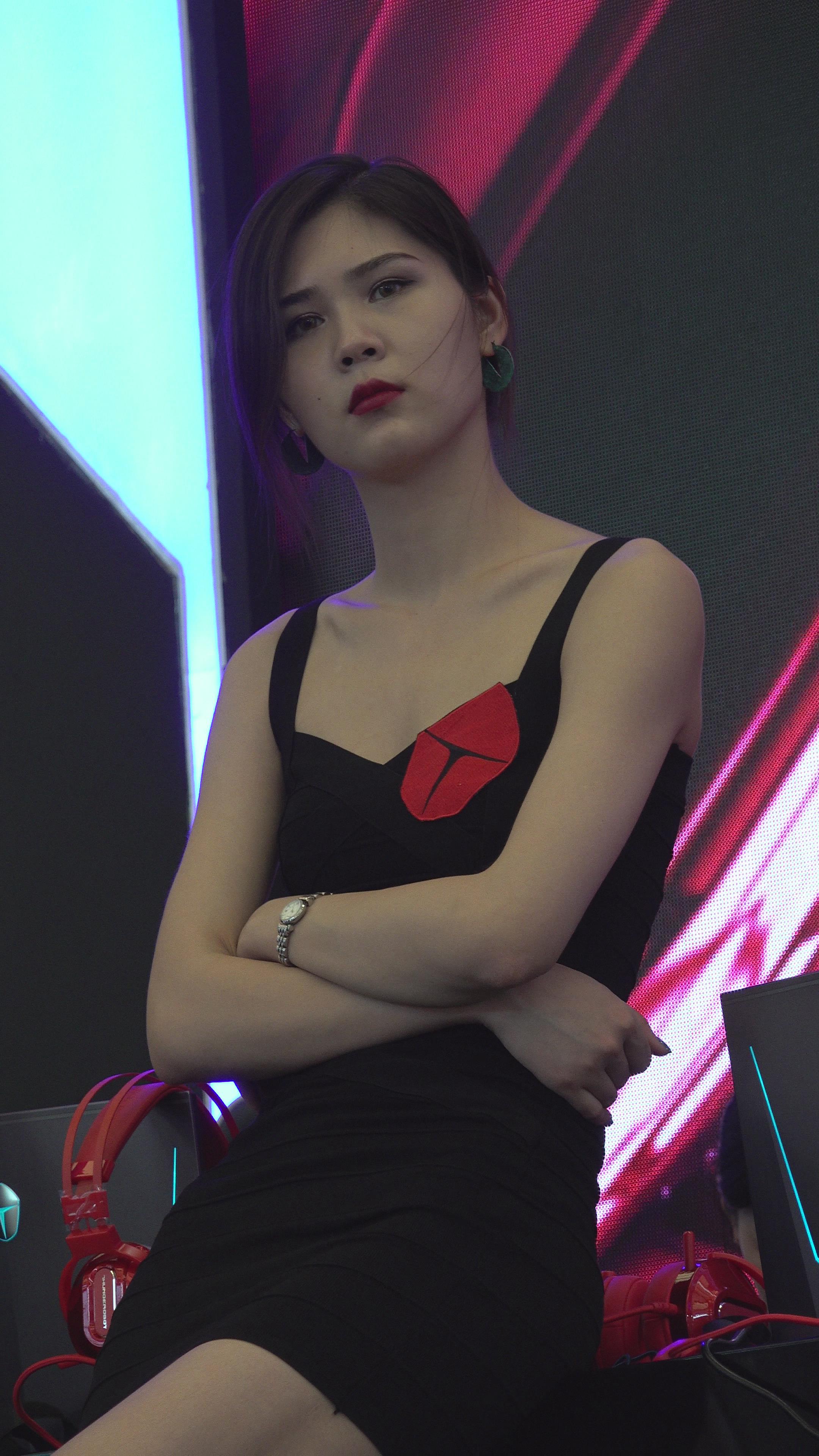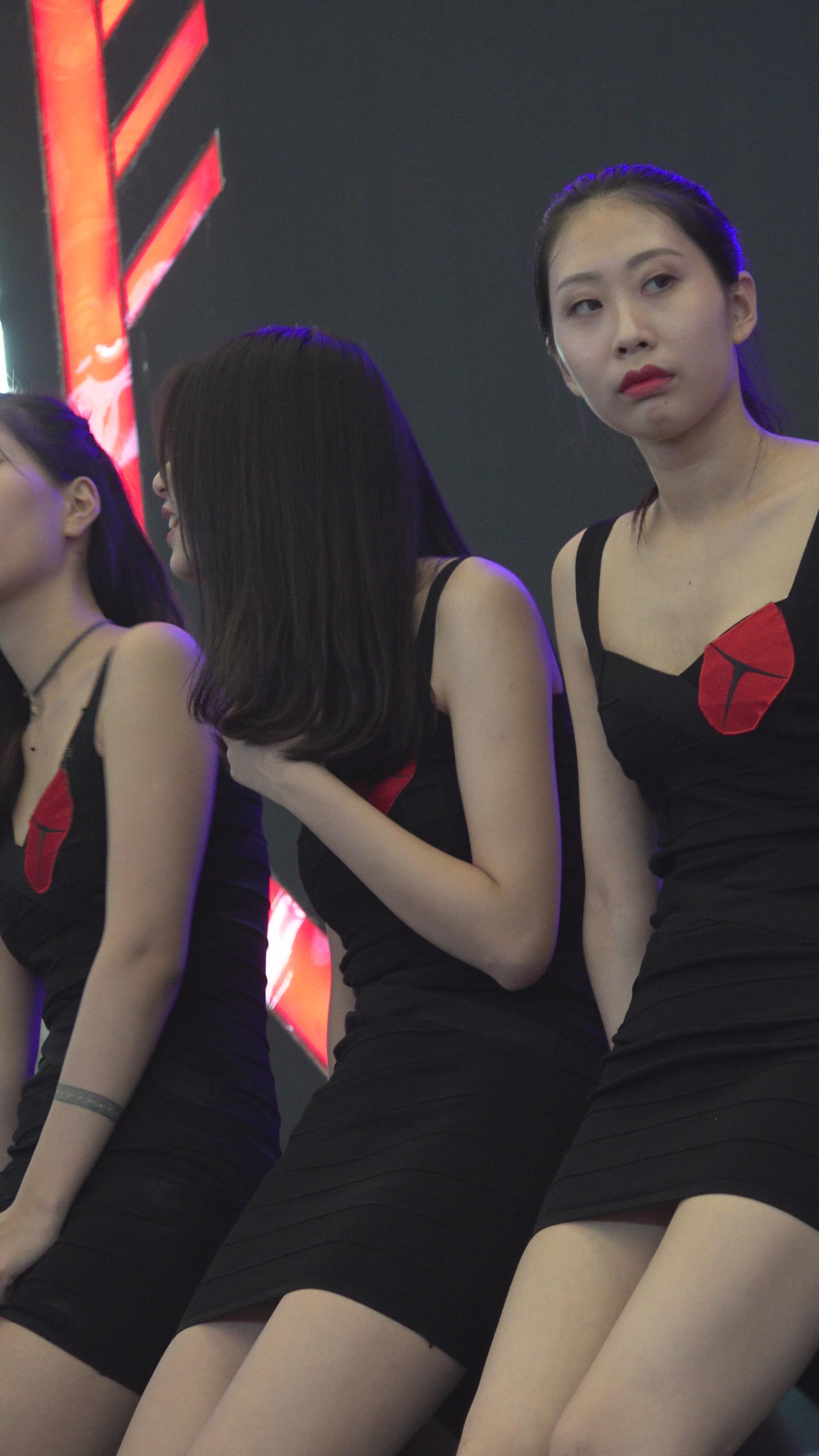 4K 黑色紧身裙高跟CJ展会的美女小姐姐 编号3143