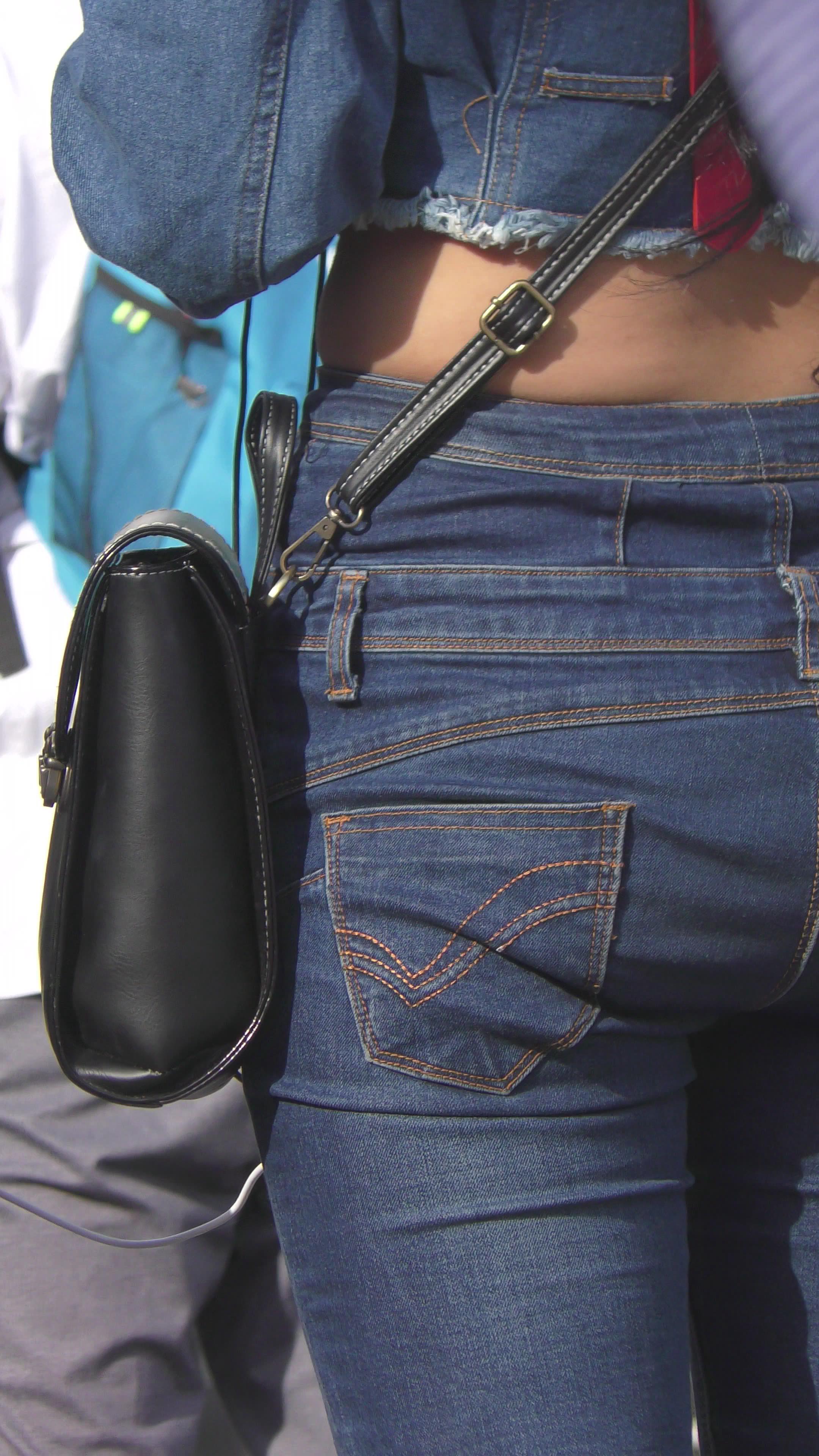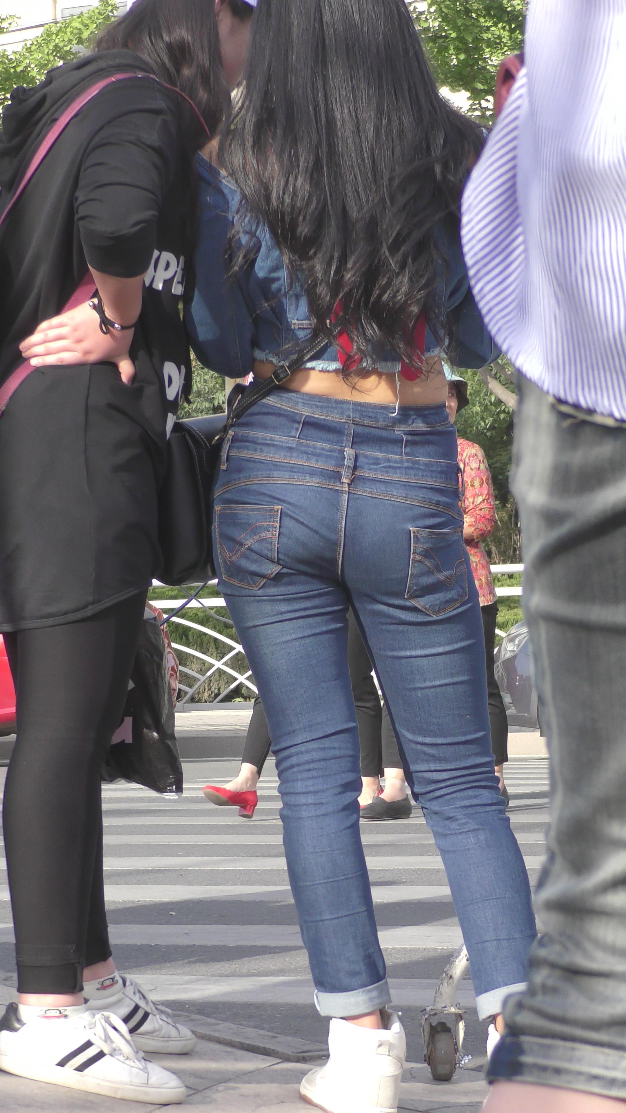 4K 极品紧身牛仔裤肉臀街拍美女 编号3150