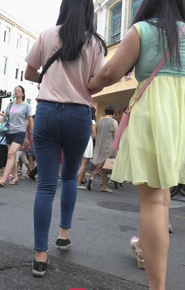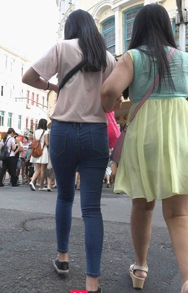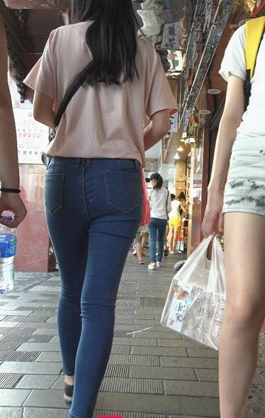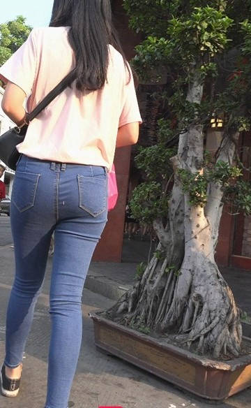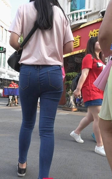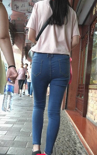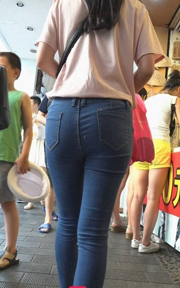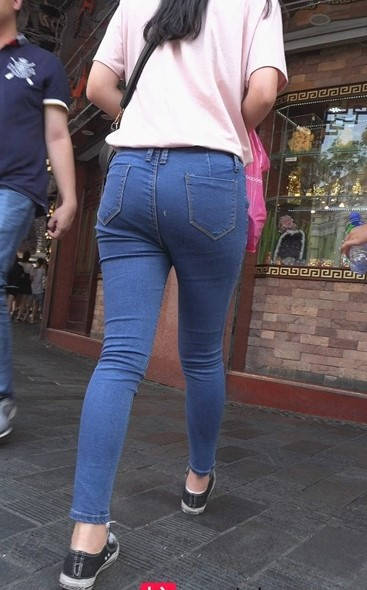 蓝色牛仔裤紧绷圆臀美眉 编号9081
