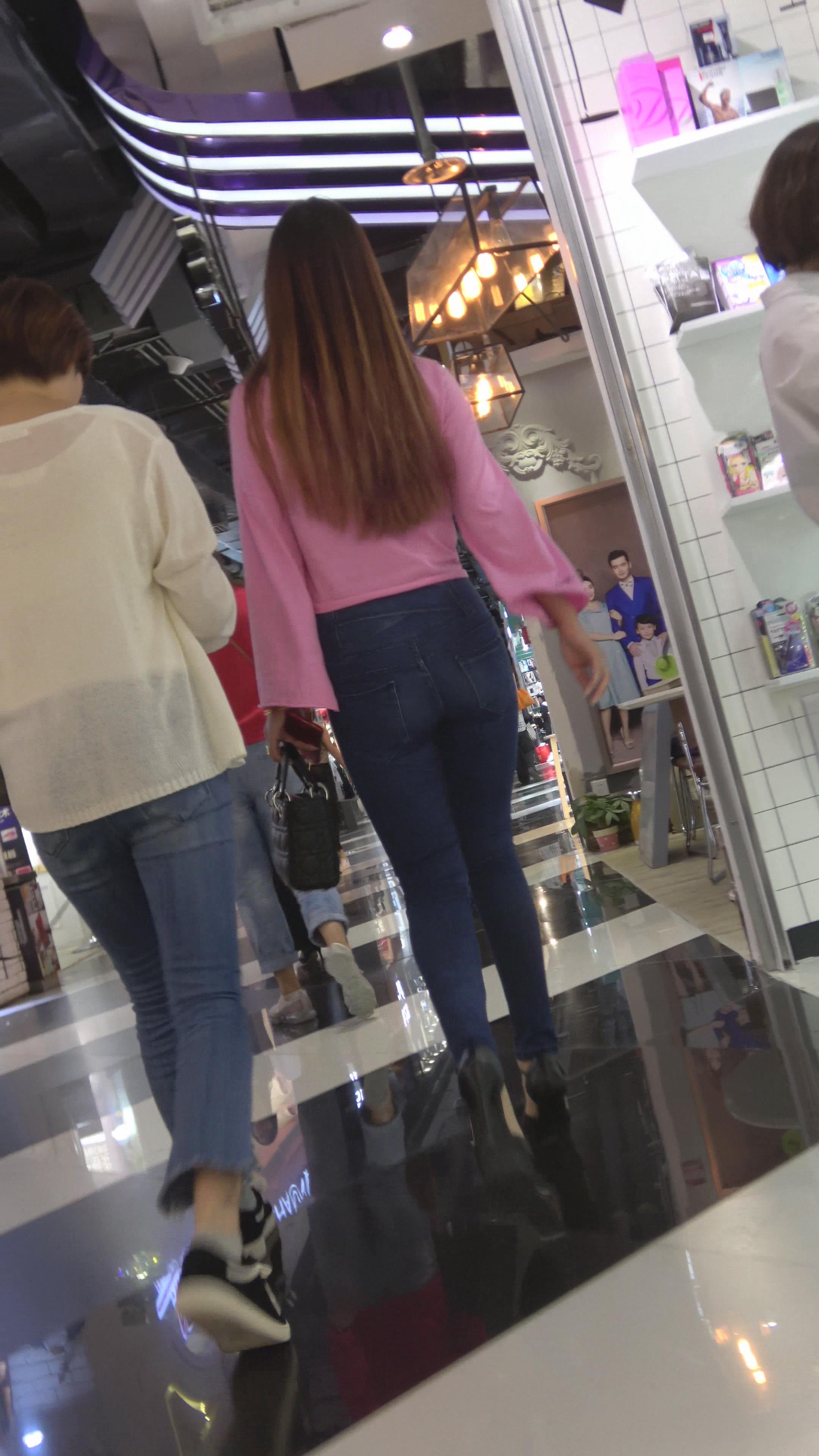 4K 极品性感高跟街拍牛仔粉衣服美女姐姐 编号3171